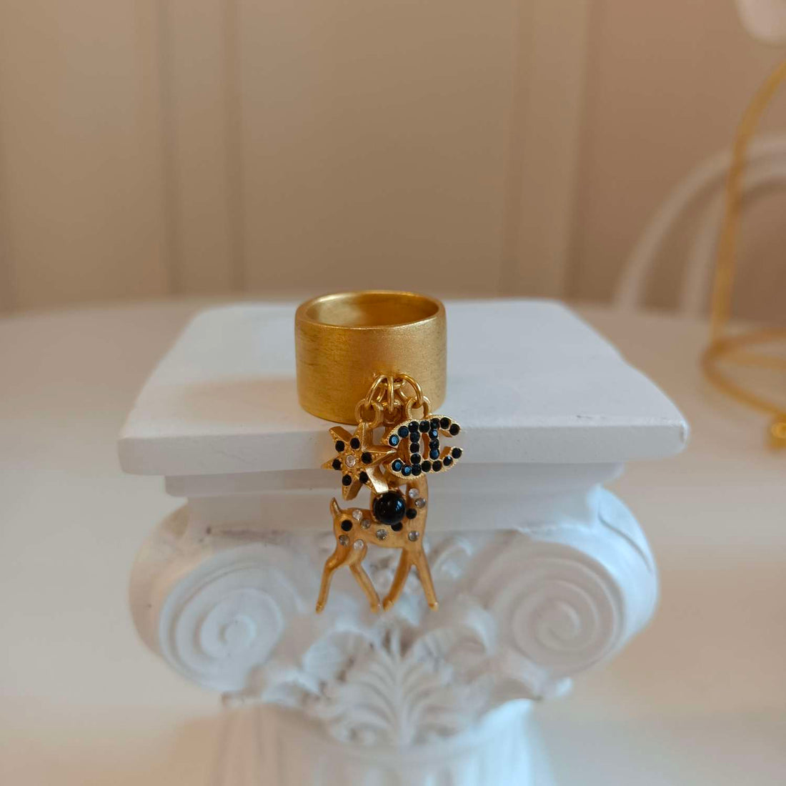 Chanel Deer Ring, US Size 7, Gold-Plated, Grade A, Code 01A