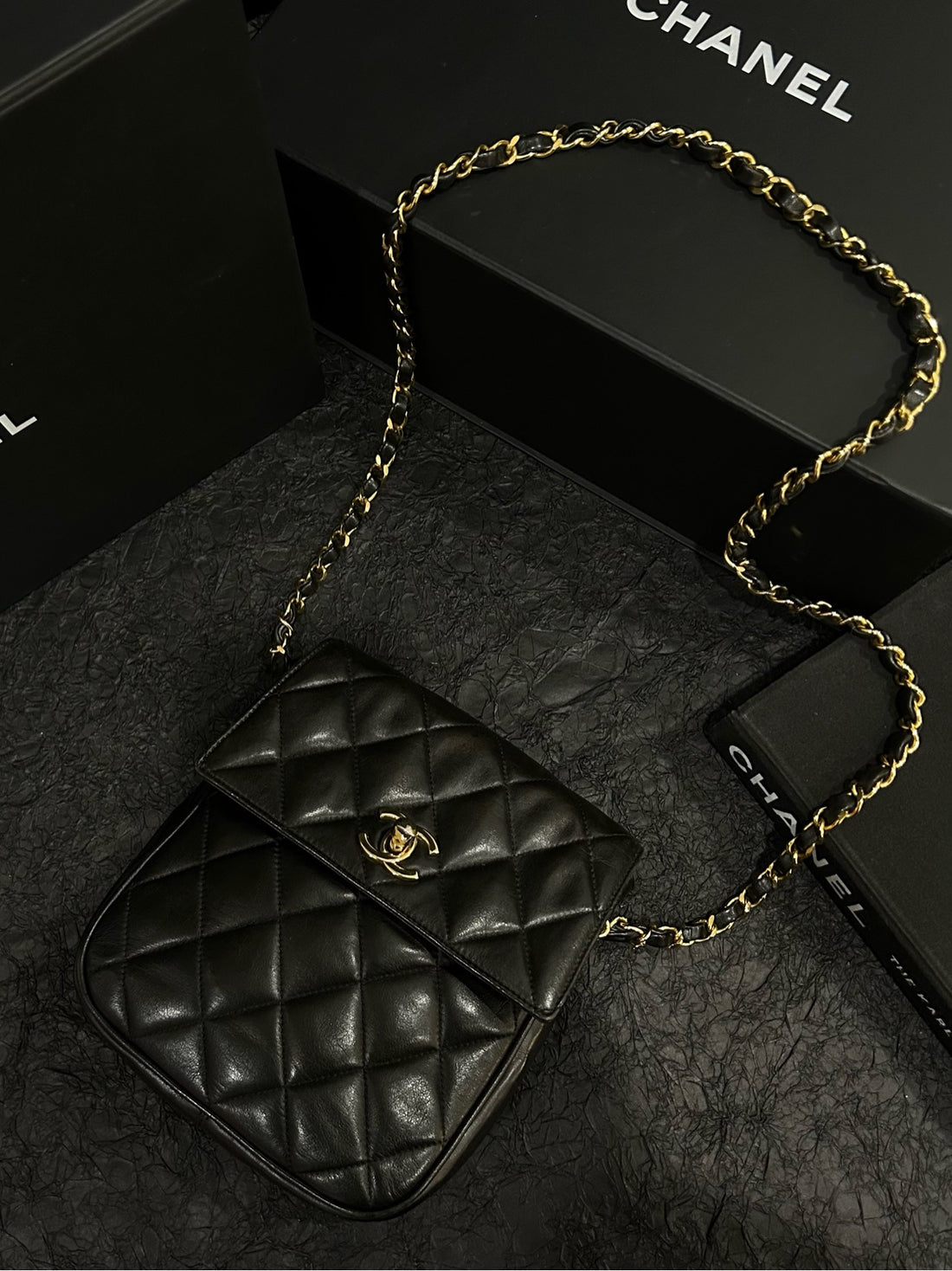 Chanel Black Gold Square Mini Flap Crossbody Bag 16cm×18cm Grade B 0844673