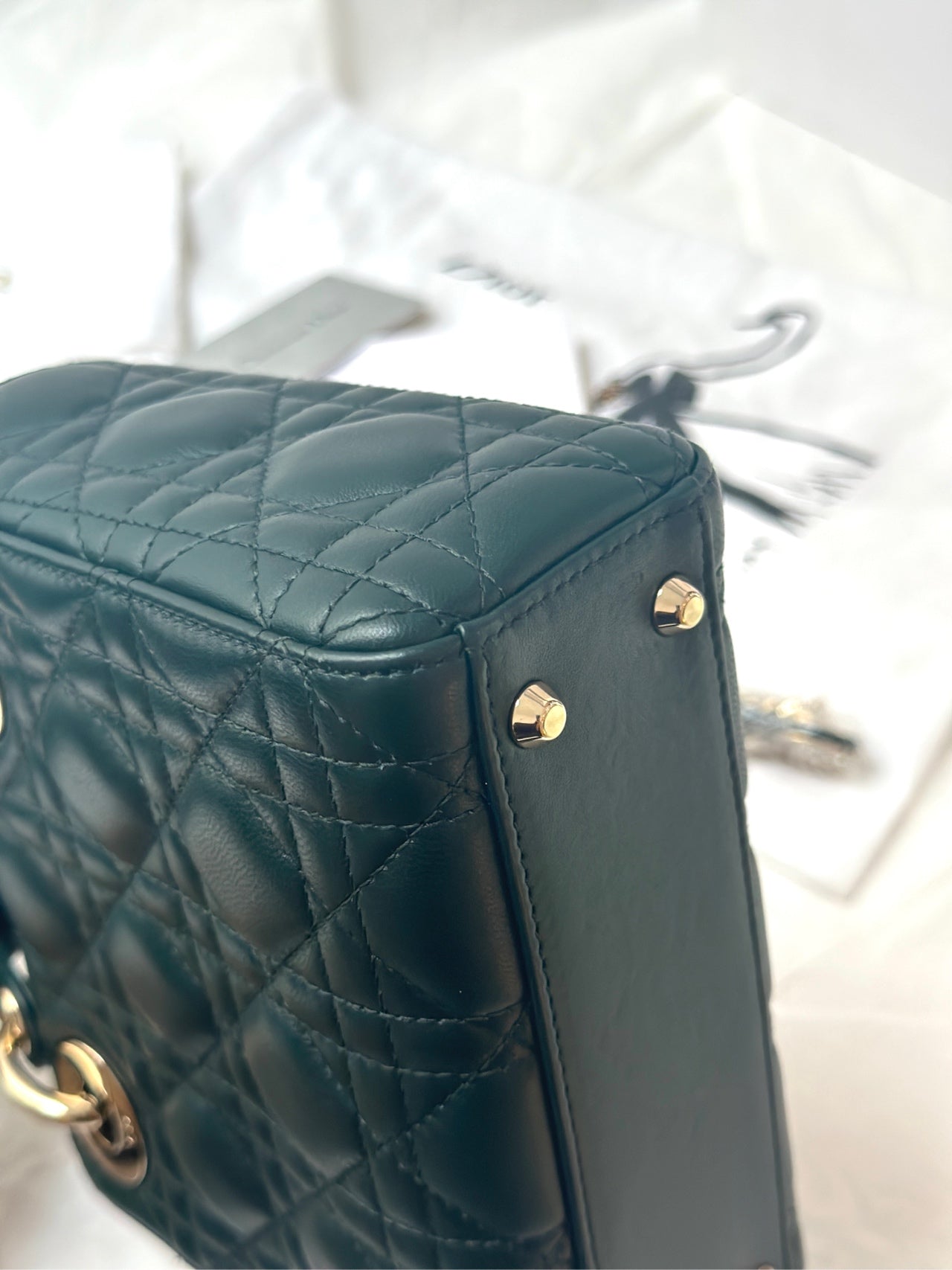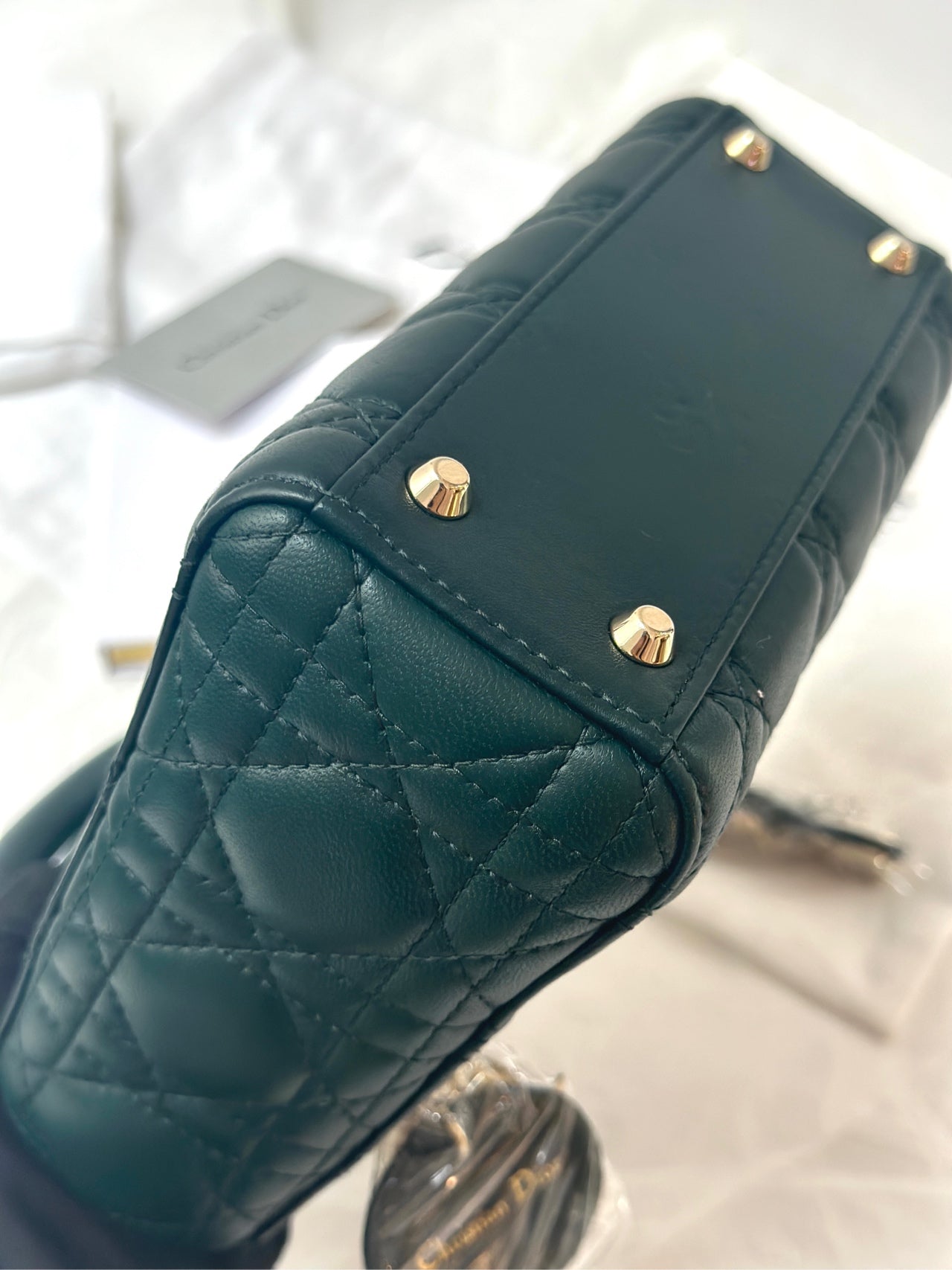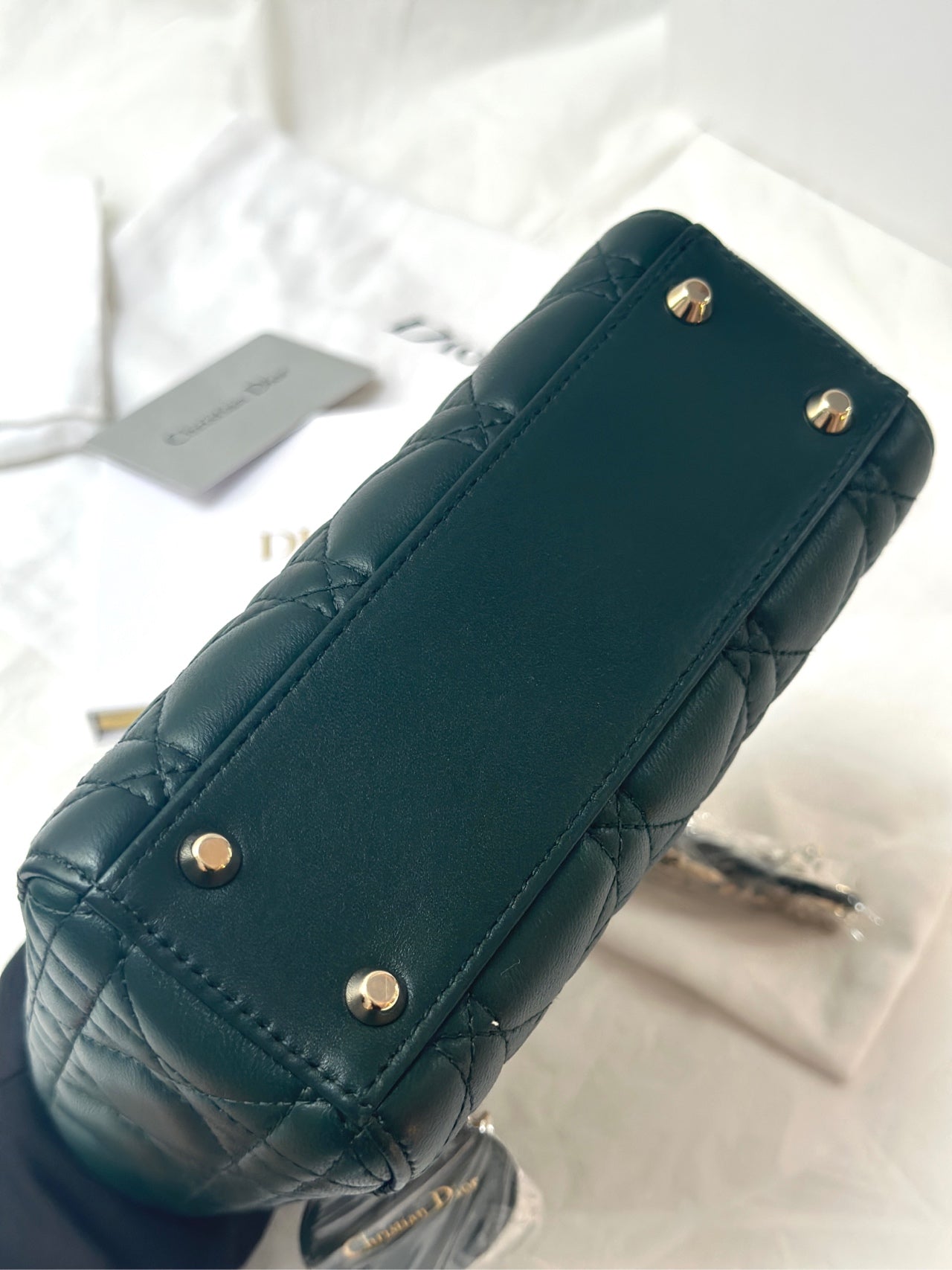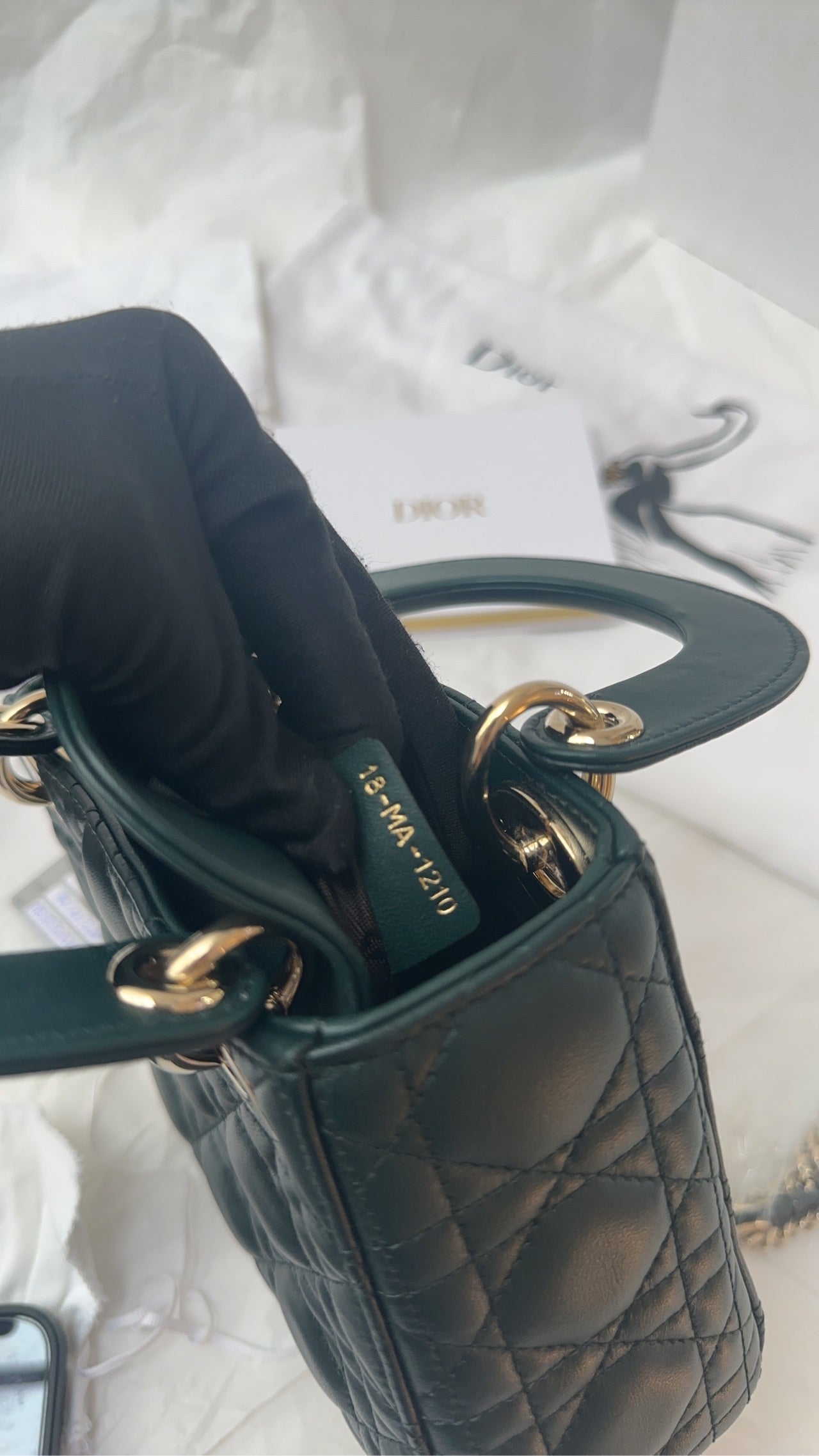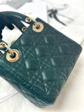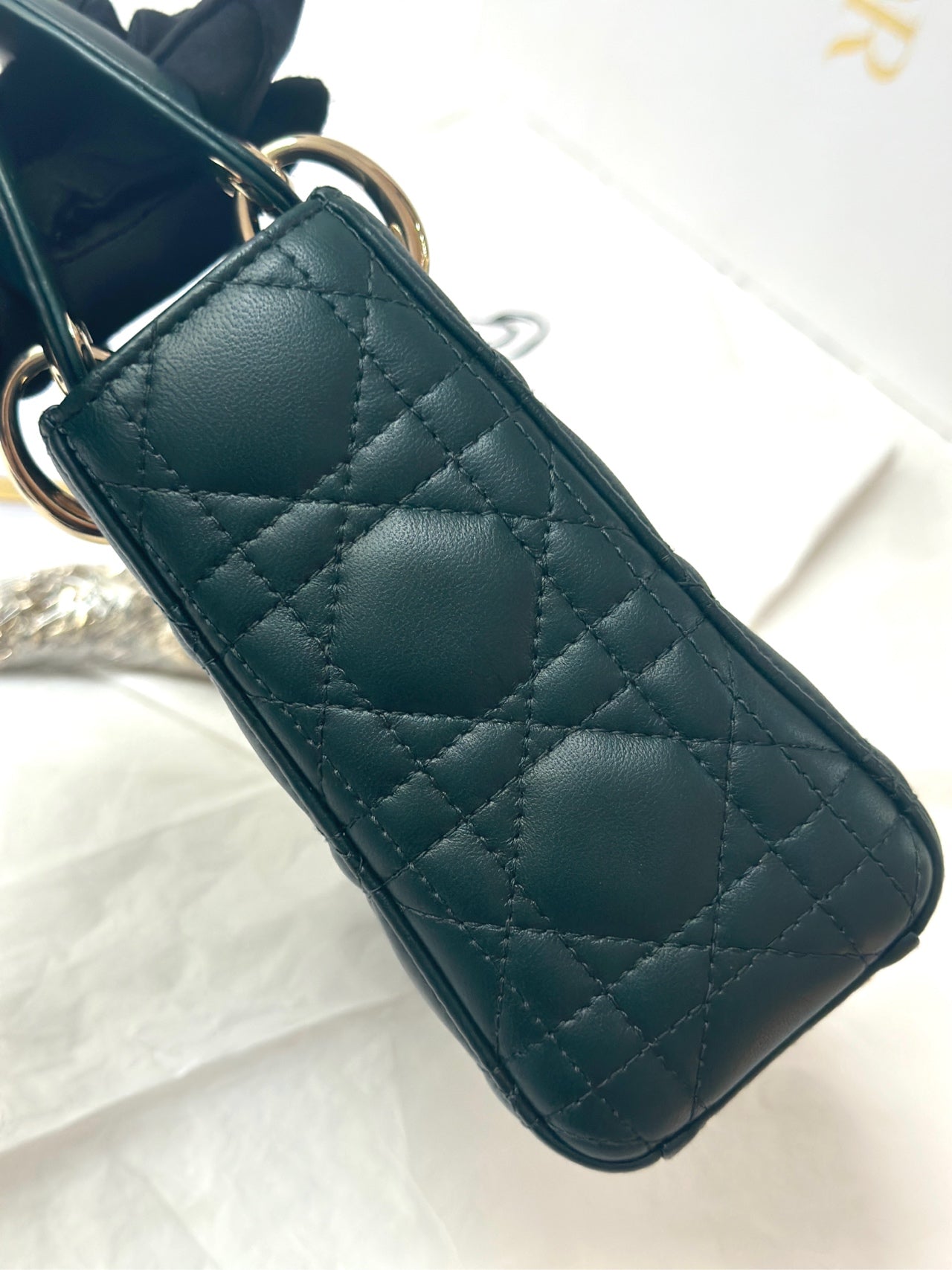 Dior Rare Hunter Green Lambskin Lady Dior Mini (3-Quilt) - 17×14cm - A-Grade (Ref: 18-MA-1210)