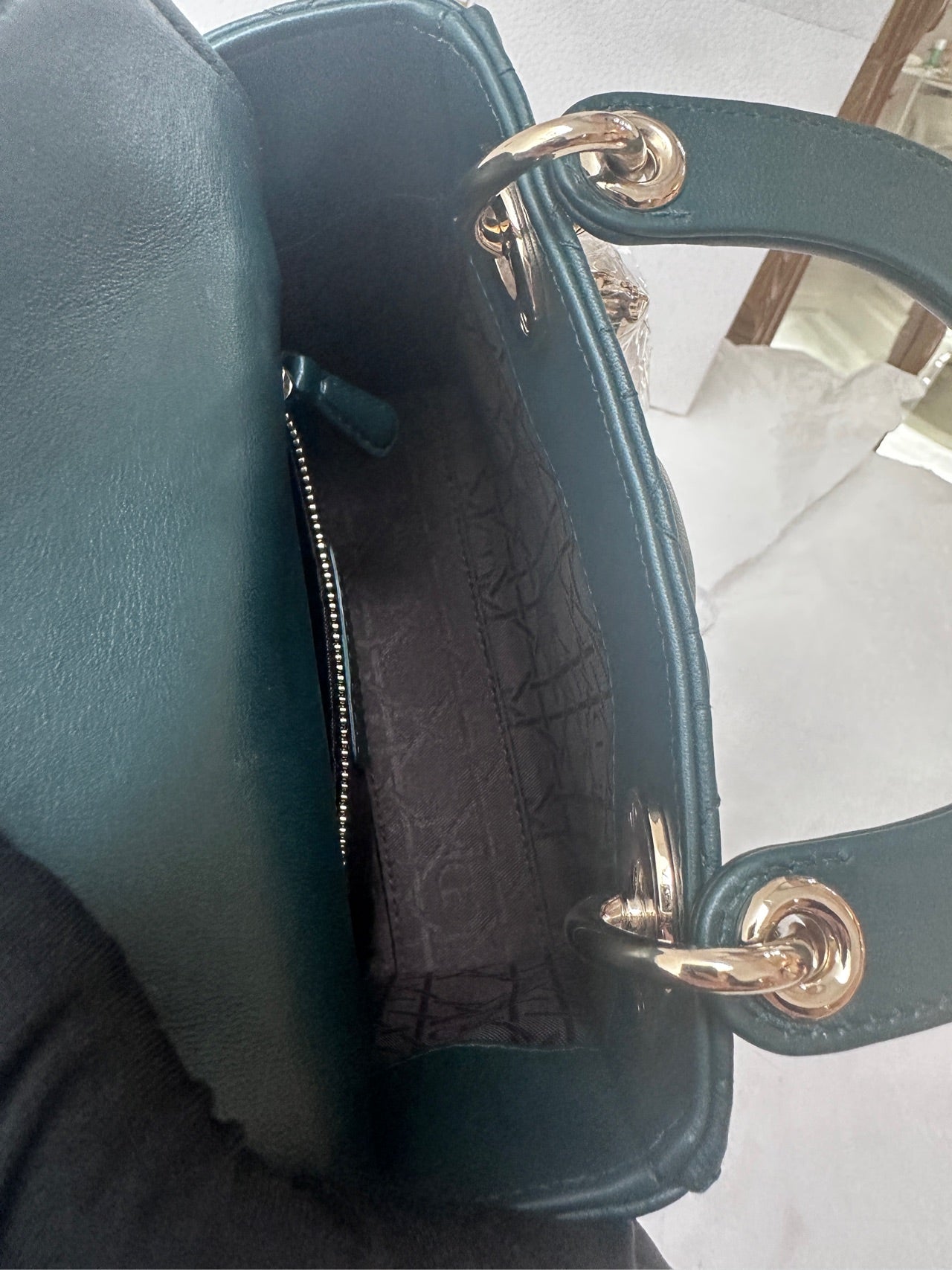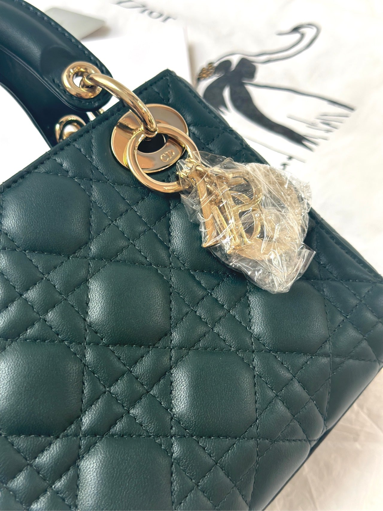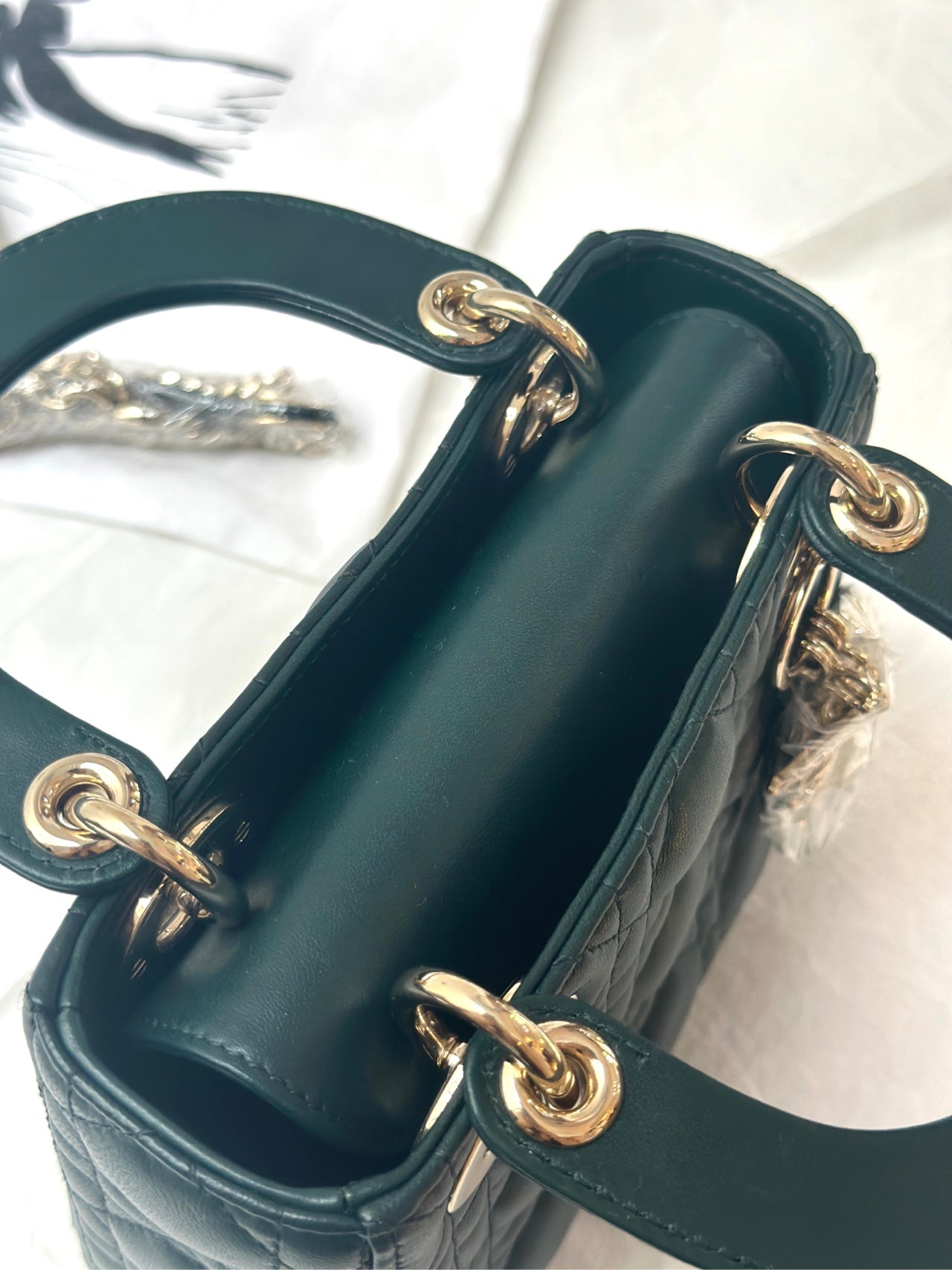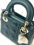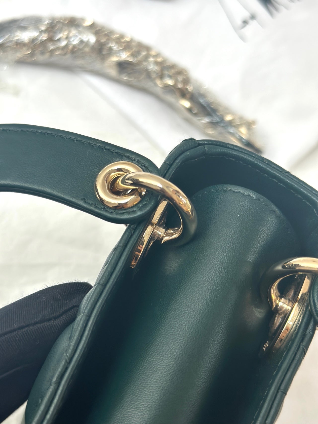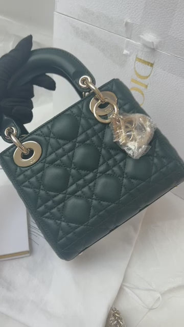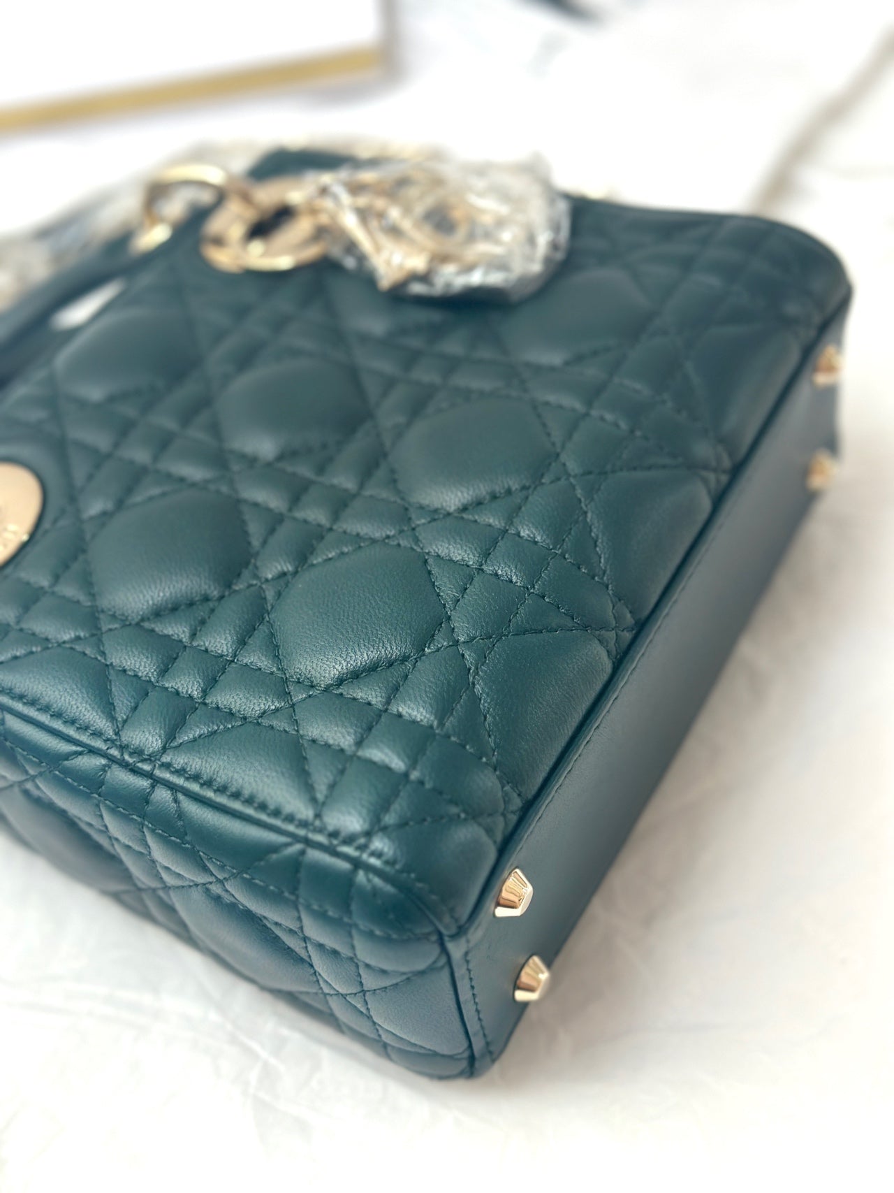 Dior Rare Hunter Green Lambskin Lady Dior Mini (3-Quilt) - 17×14cm - A-Grade (Ref: 18-MA-1210)