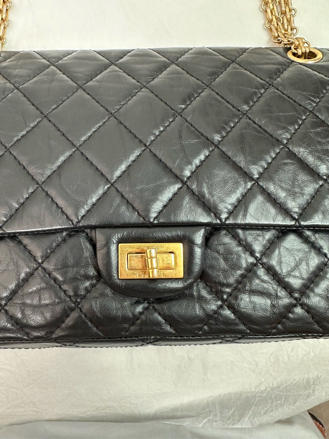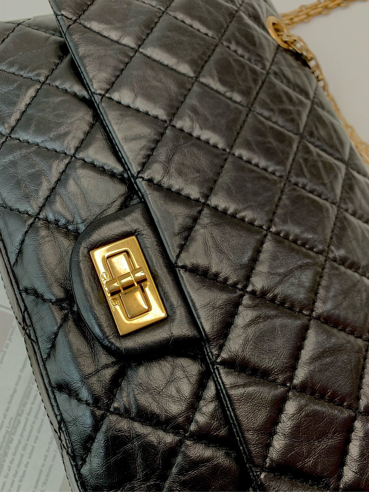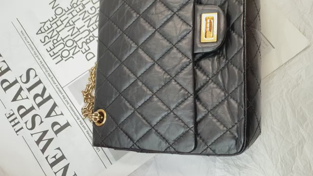Chanel Black Gold 2.55 Reissue Medium (24-Series) - (includes authenticity card)-Calfskin 28×17cm - Serial 24554997