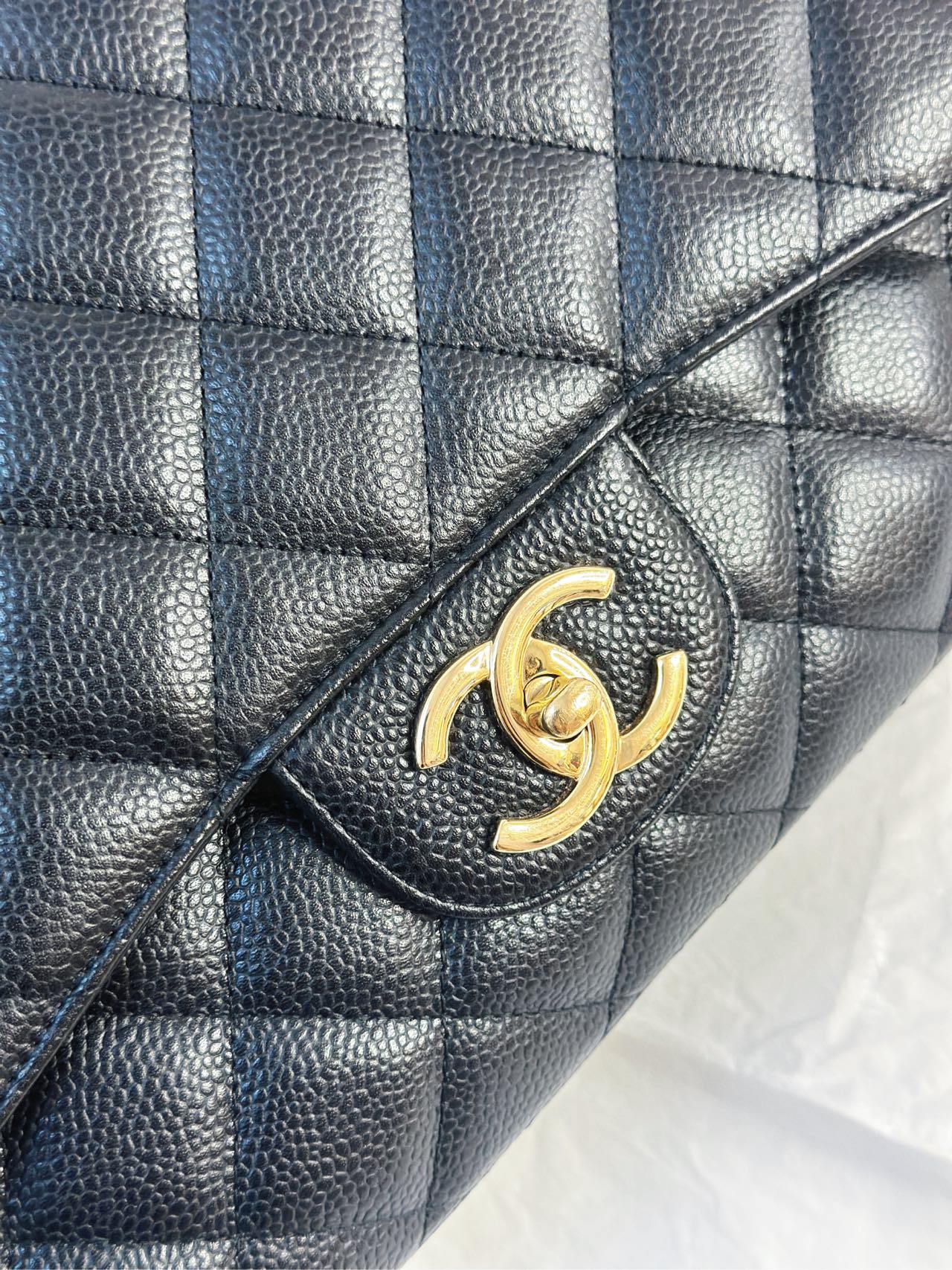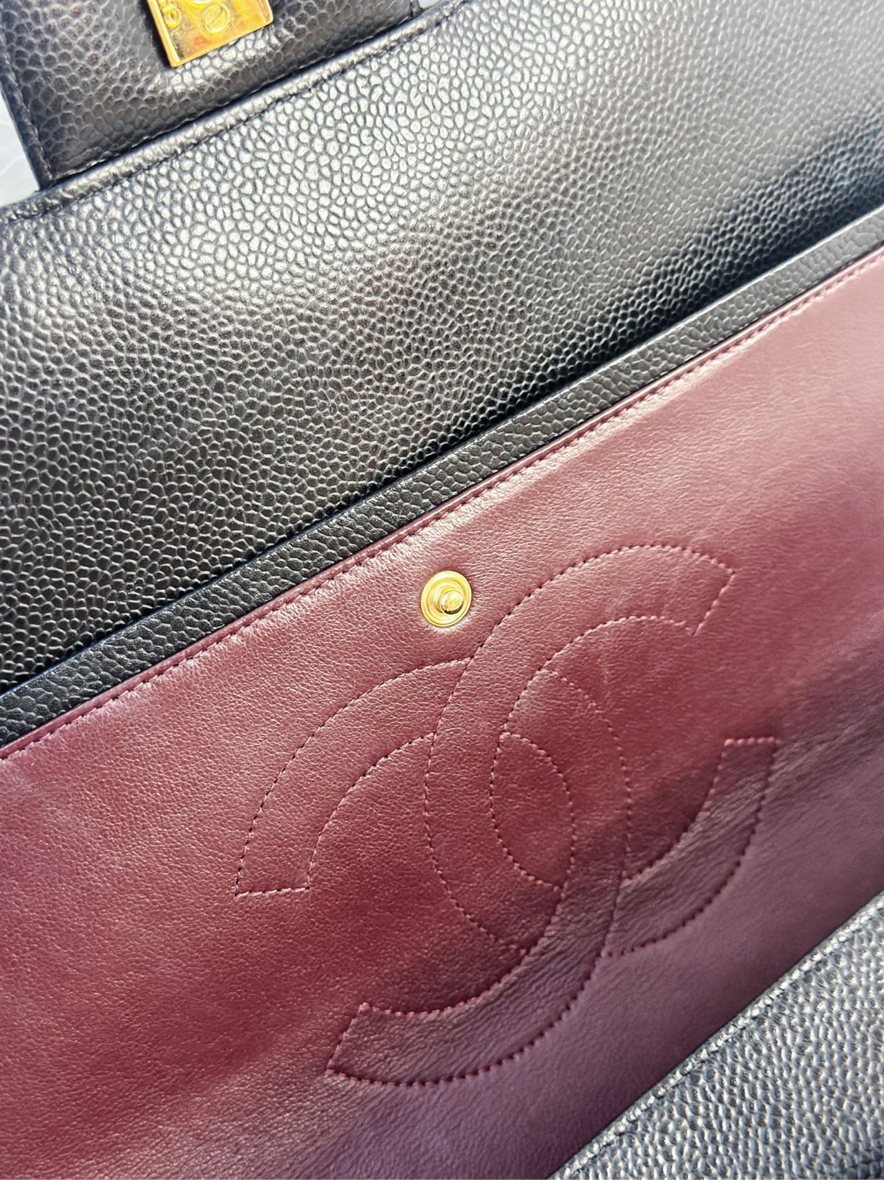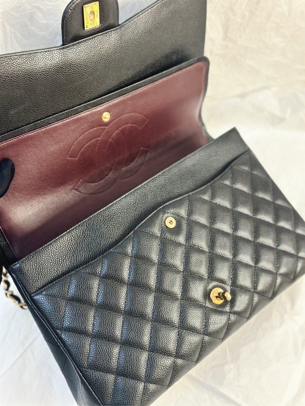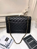 CHANEL Black Caviar Gold Hardware Double Flap CF Maxi Bag 14K 33*22cm Grade A Serial 14392328
