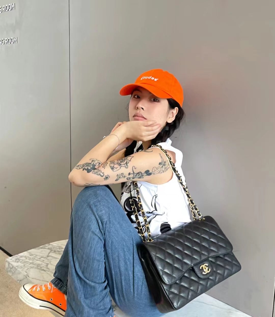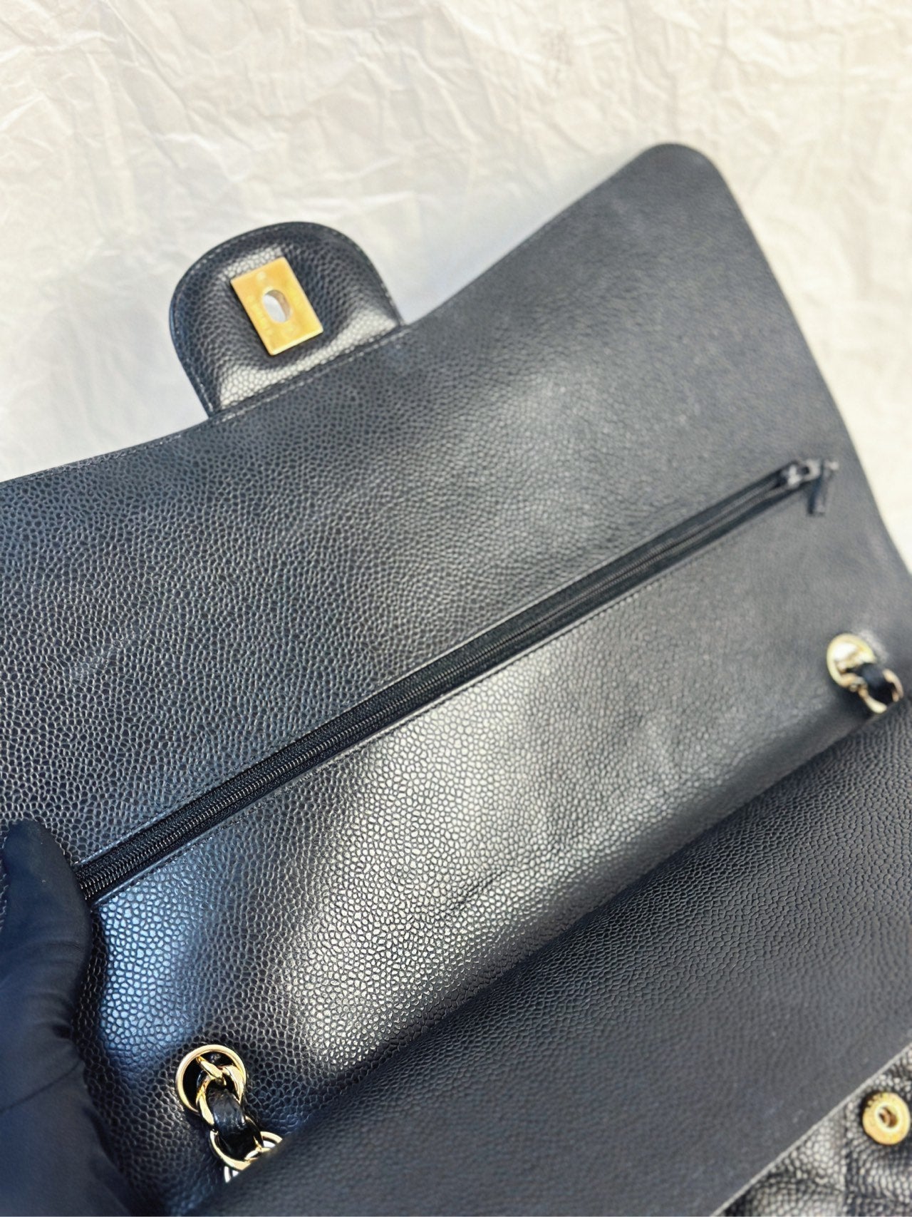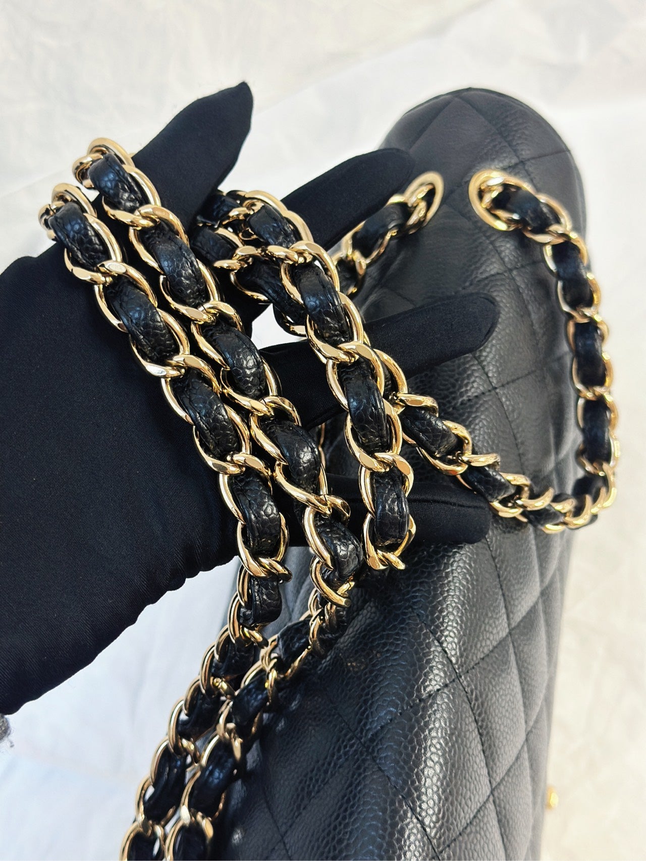 CHANEL Black Caviar Gold Hardware Double Flap CF Maxi Bag 14K 33*22cm Grade A Serial 14392328