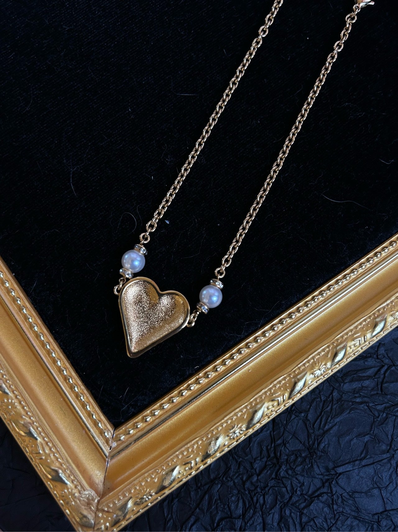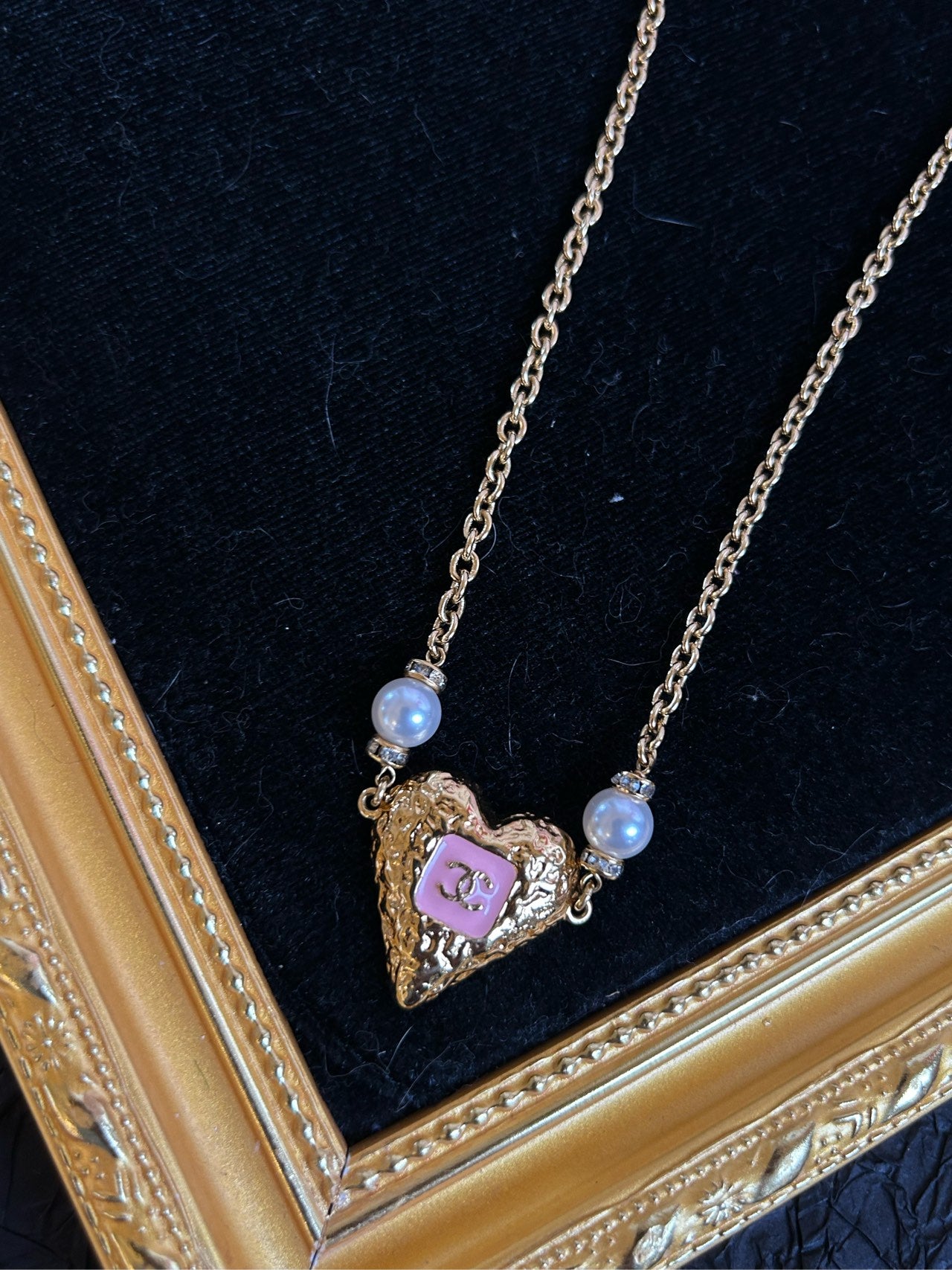CHANEL 23K Lava Heart Pendant Necklace-(With Original Box • 39.8cm Gold-Tone Chain)