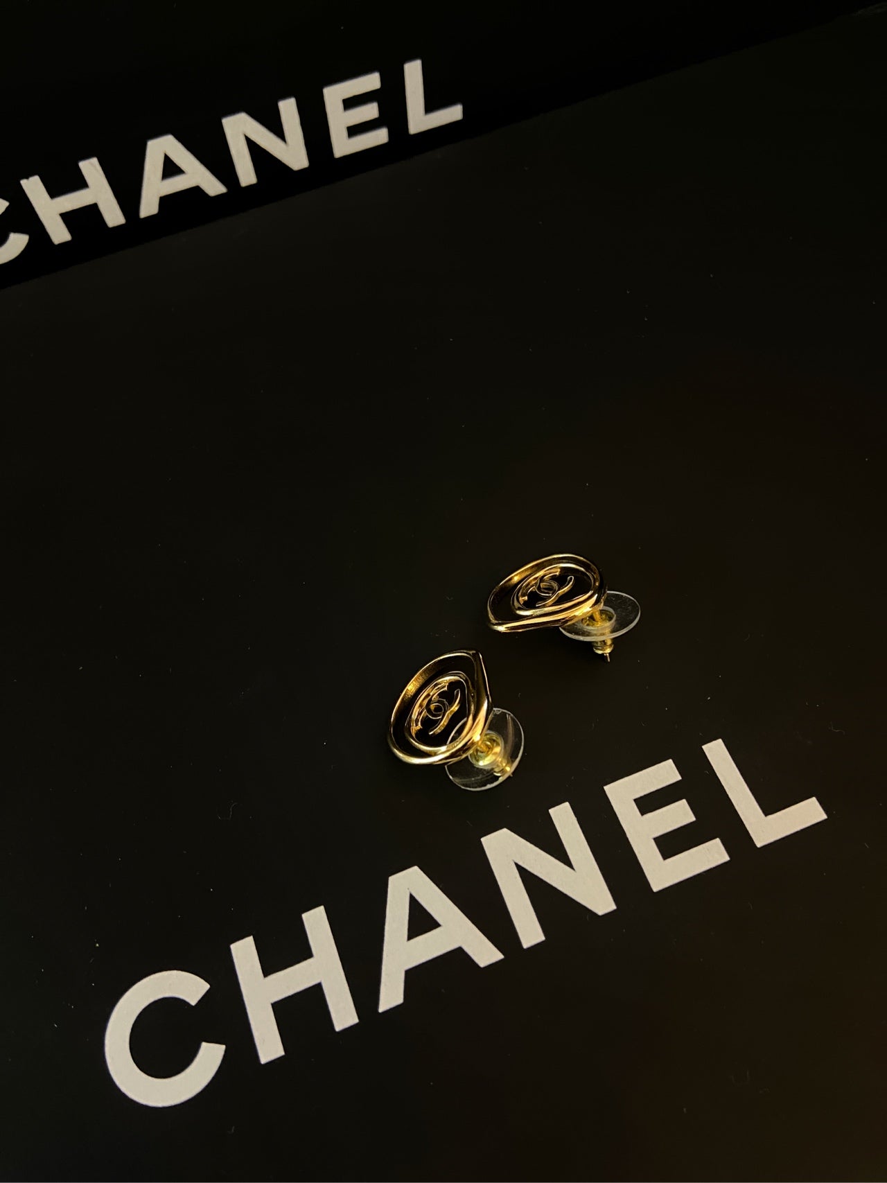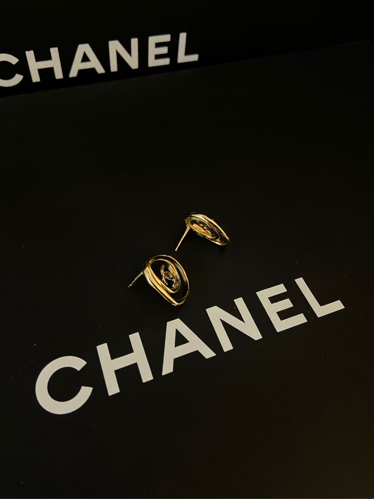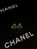 CHANEL 24K Gold-Plated Openwork Asymmetric Double C Stud Earrings (Grade S - Brand New Full Set)-2cm×1.6cm