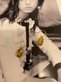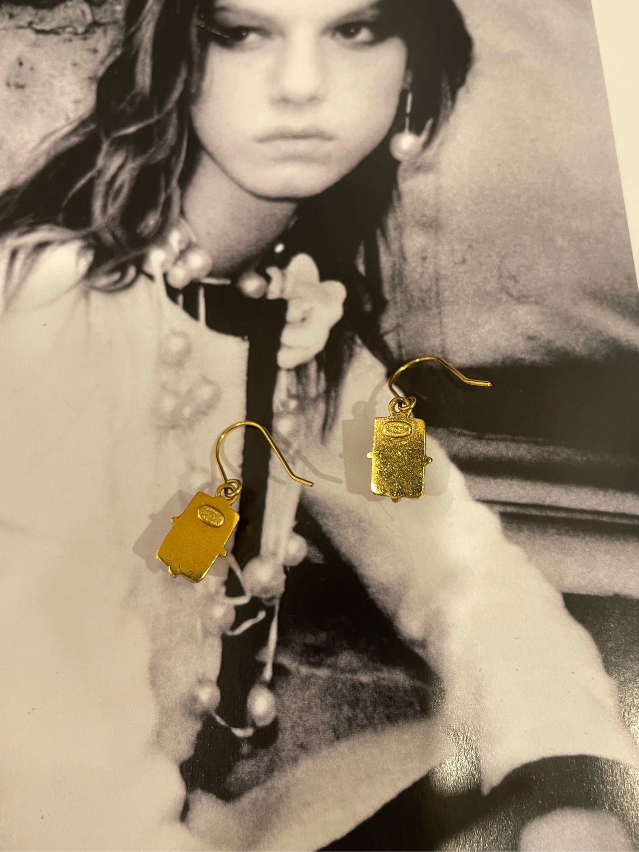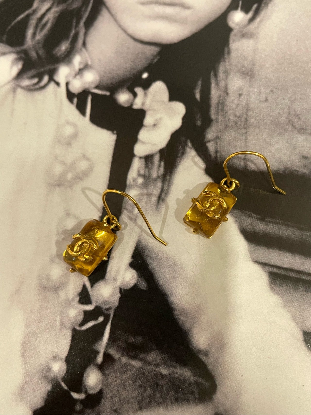 Chanel 99P Gold-Tone Glass Cube Drop Earrings-Total Length: 2.8cm, Pendant Size: 1.8cm × 0.6cm (L×W)