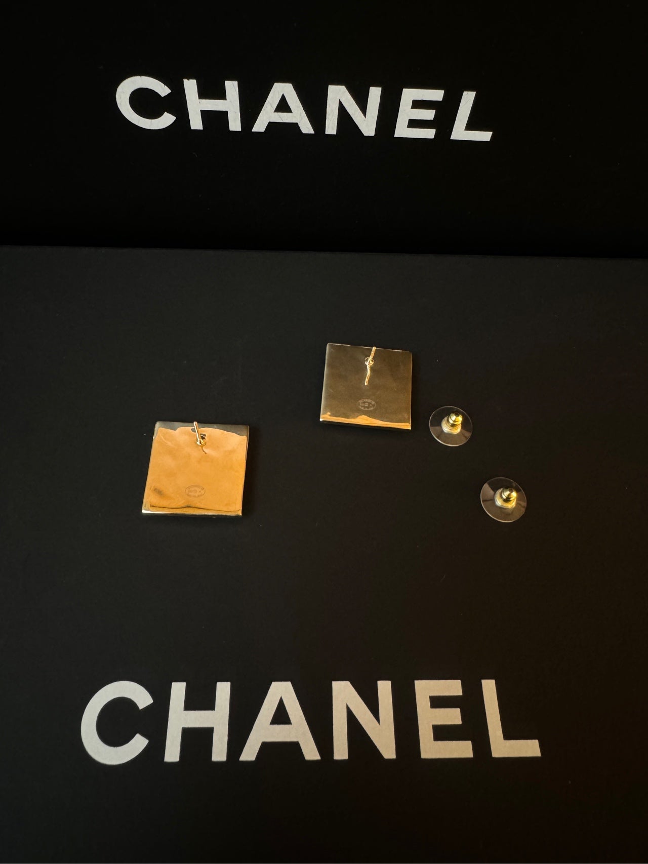 CHANEL Black Enamel Square Stud Earrings - Métiers d'Art 22A - 2.5cm
