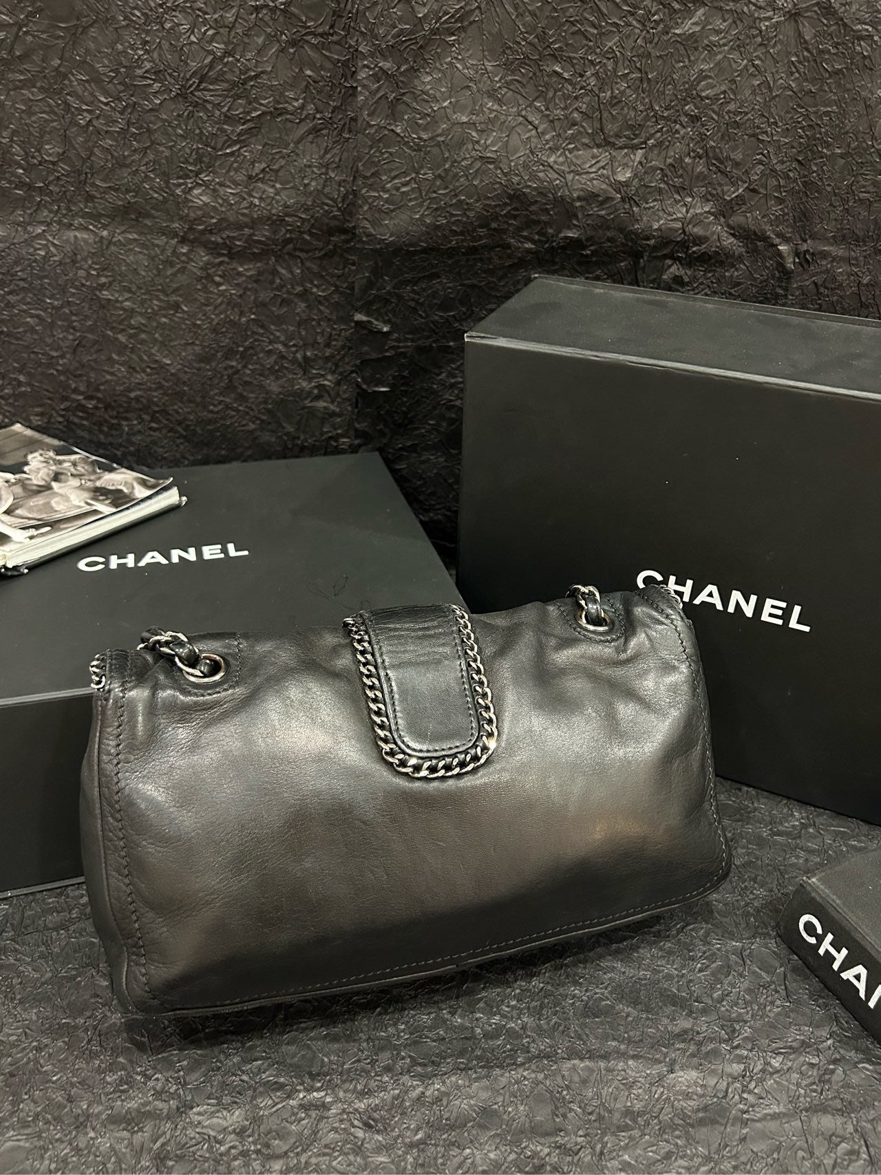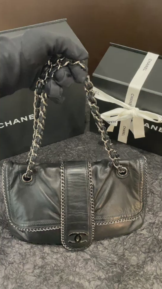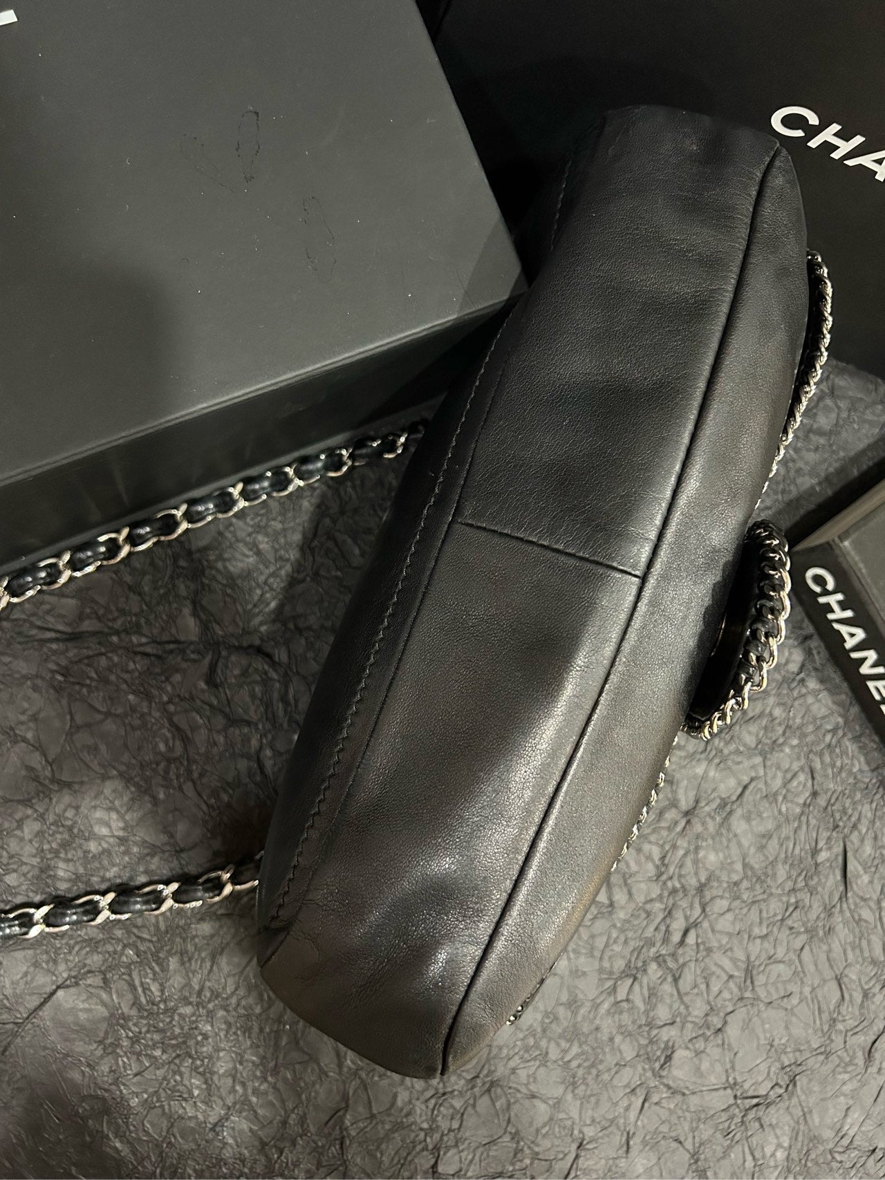 Chanel Black Lambskin Classic Flap with Silver Hardware & Piped Edging - 28×18cm - A-Grade (Serial 11370508)