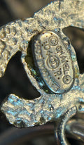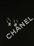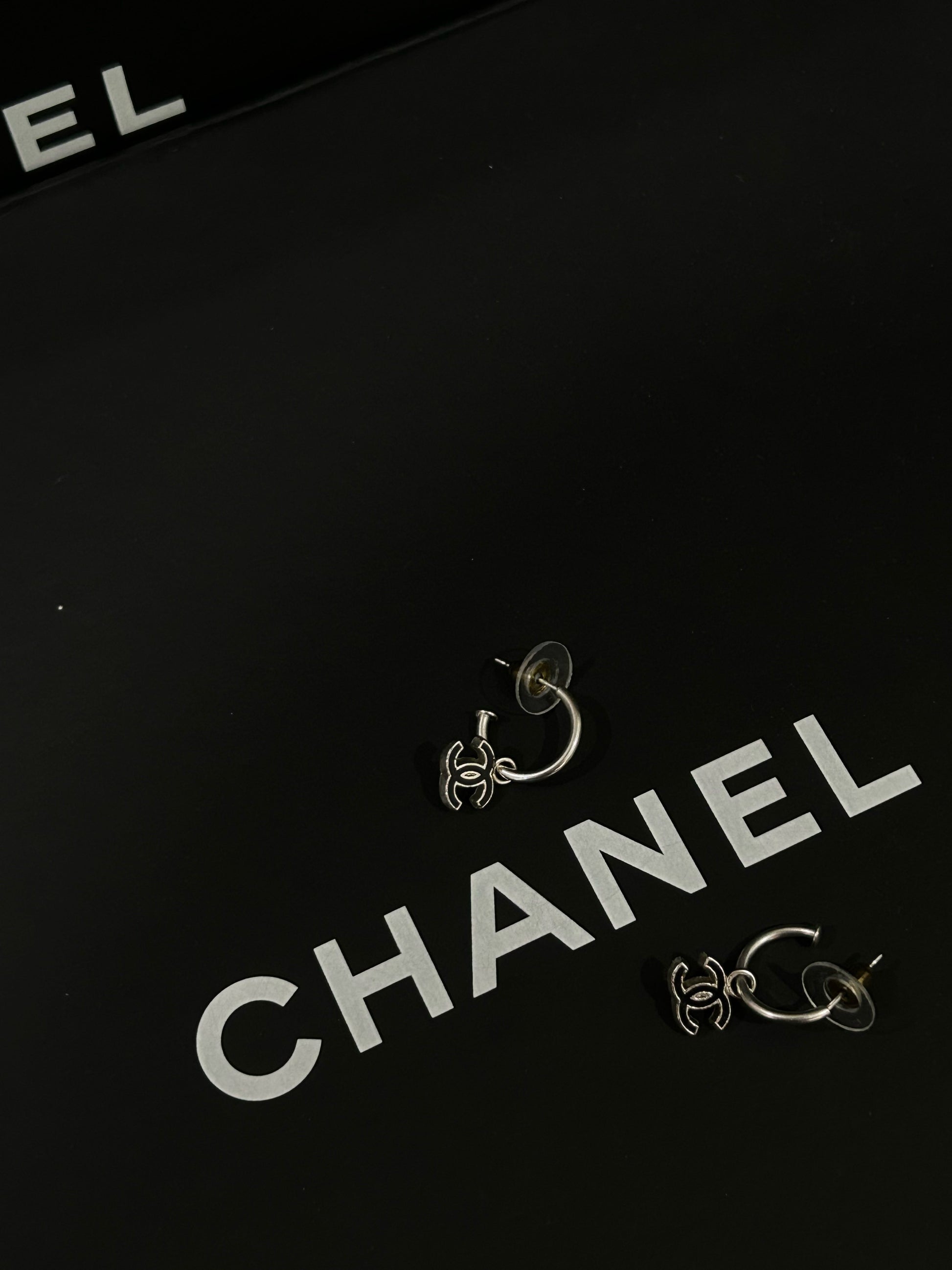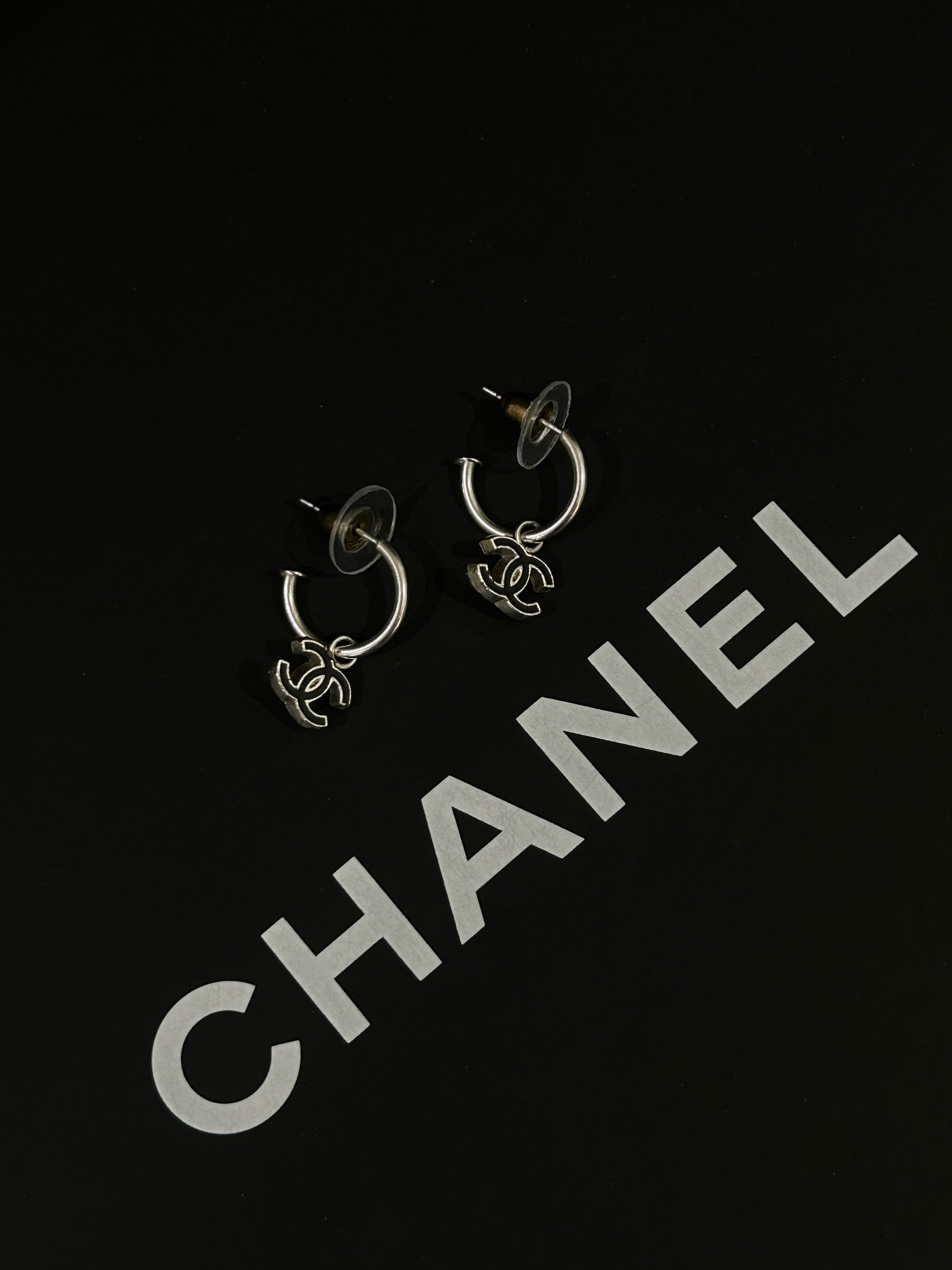 CHANEL Black & Silver CC Enamel Stud Earrings 04P - 1.6cm Silver Hoop (1cm CC Logo)-B+ Grade