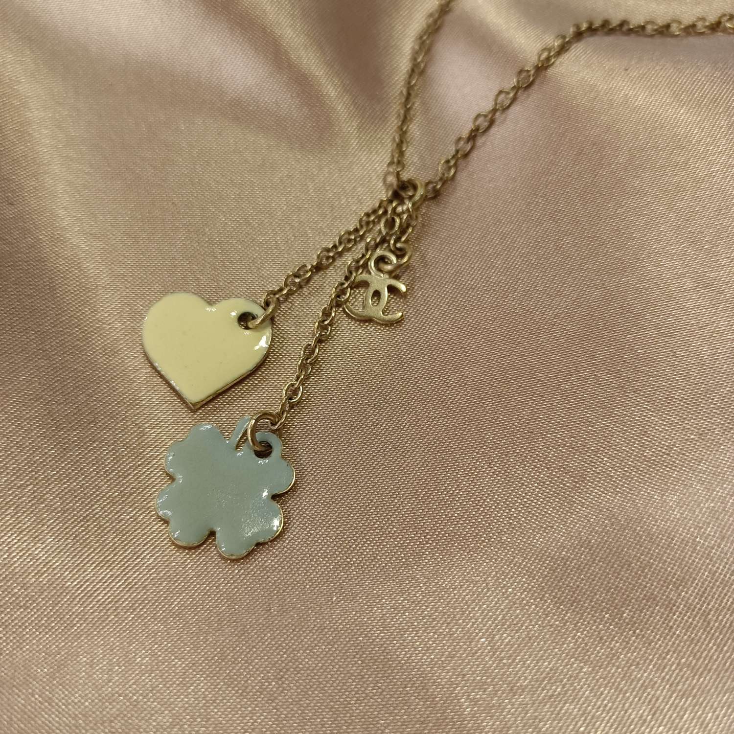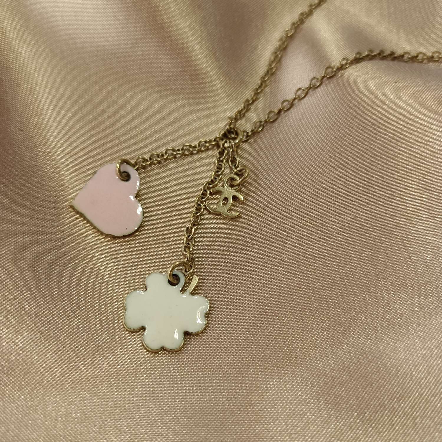 Chanel Four-Leaf Clover & Heart Pendant Necklace (01P) - Gold-Plated & Enamel - Grade B (Re-Engraved)