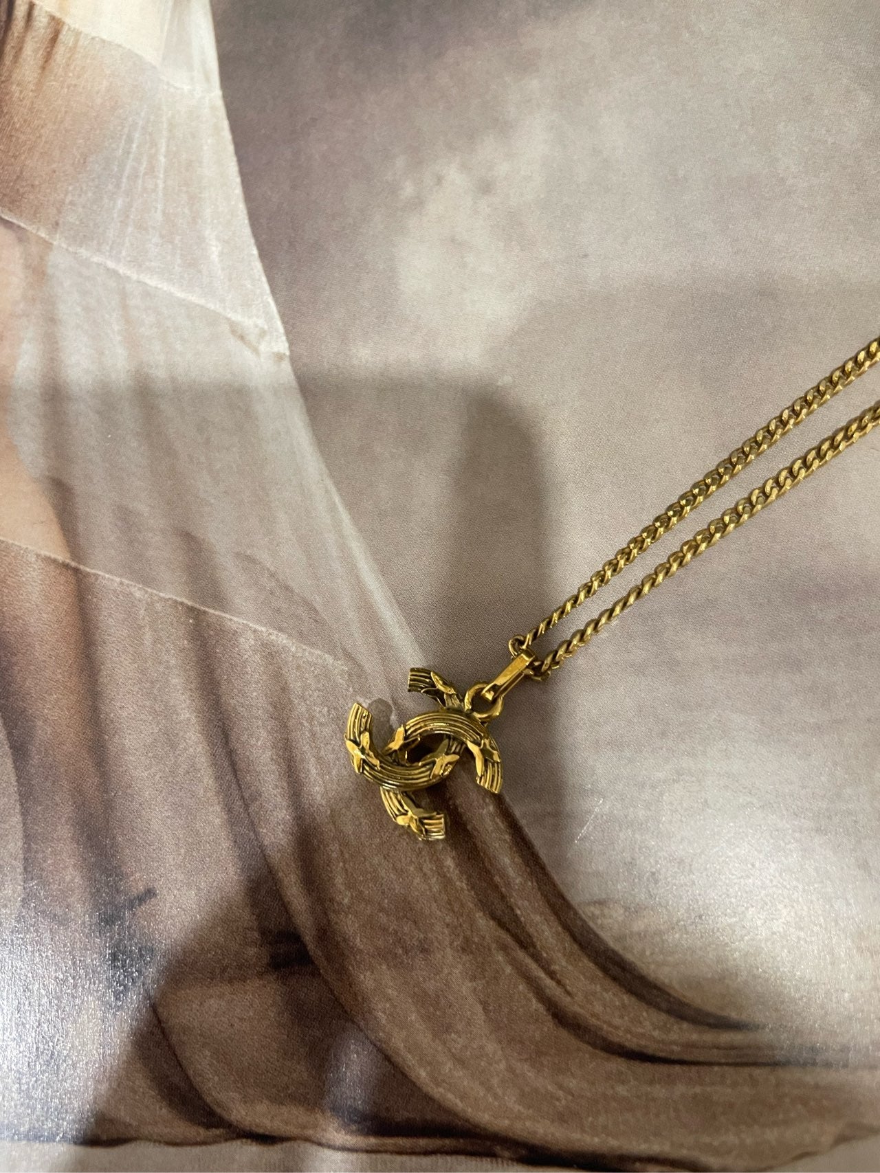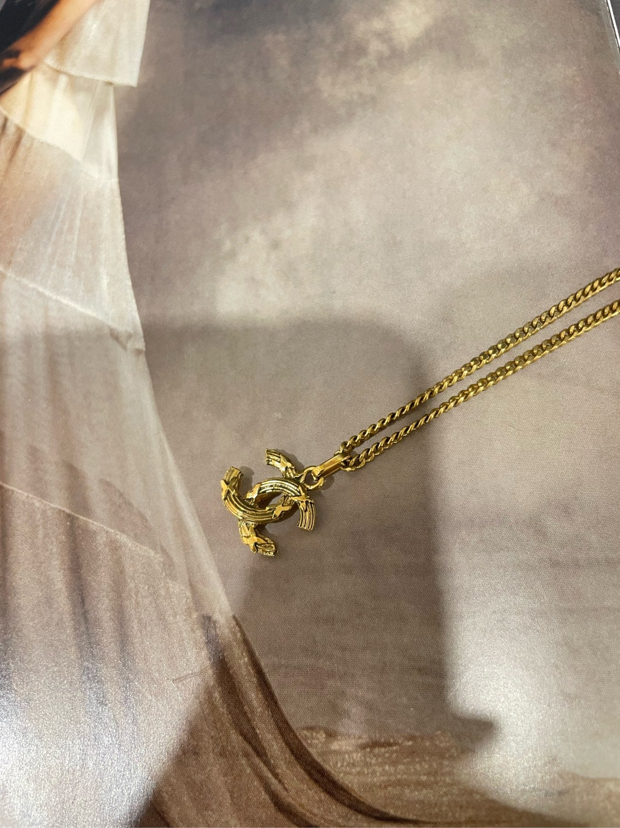 Chanel Gold-Tone Double C Logo Pendant Necklace-39cm-Gold-plated