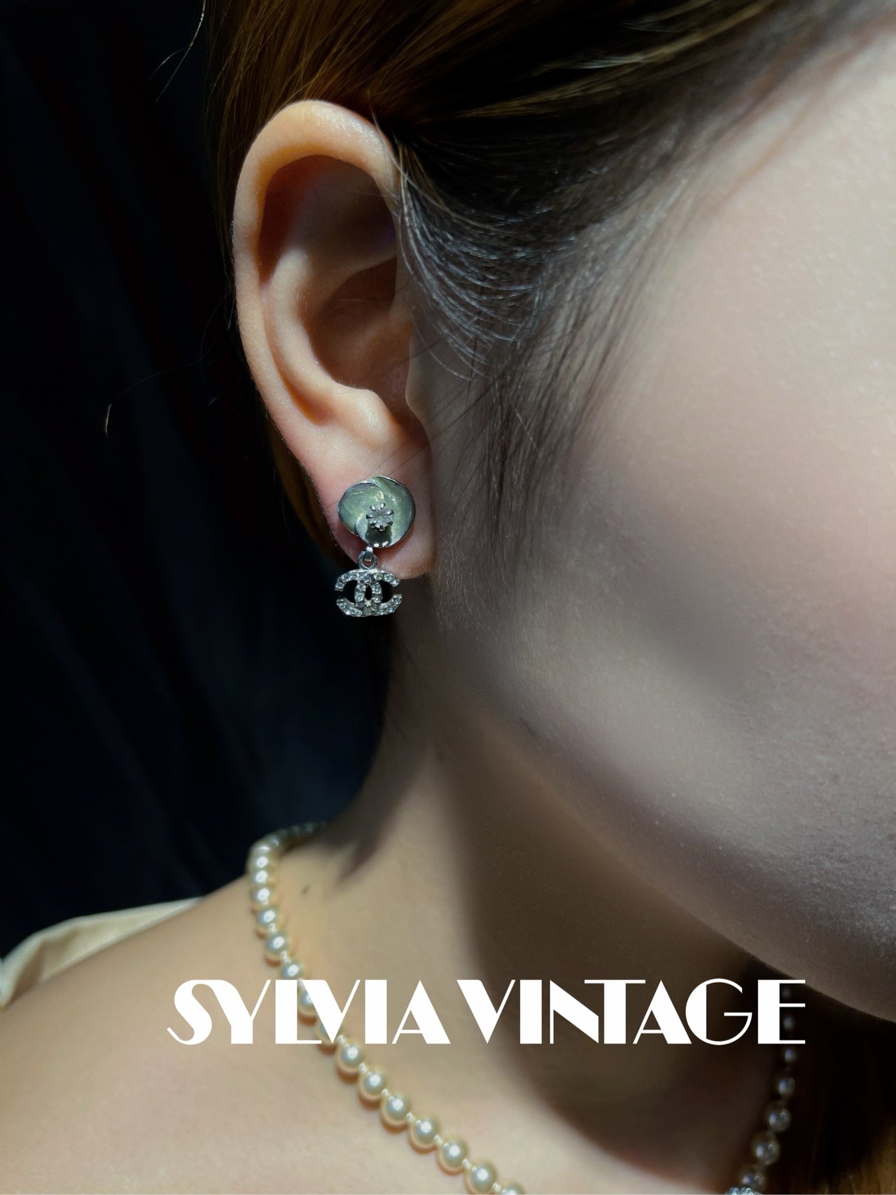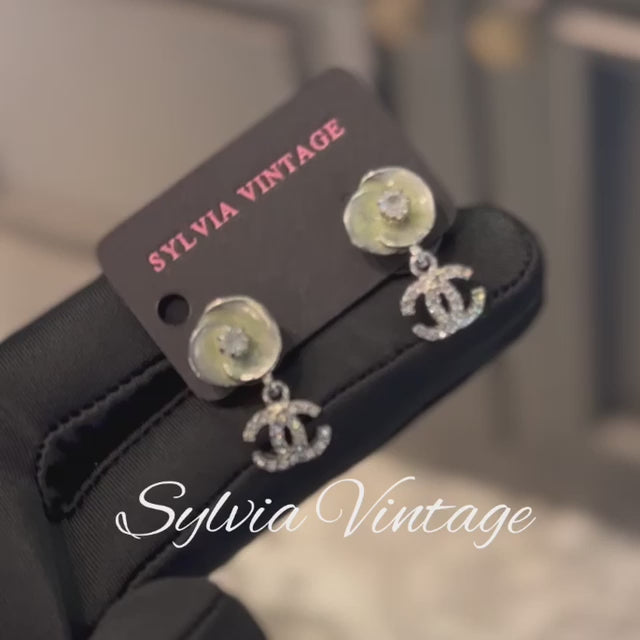 Chanel Green Floral Enamel Stud Earrings - Full Crystal Embellishment - 2.3cm (Total) / 1.2cm (Flower) - Grade A