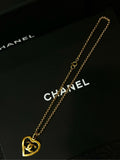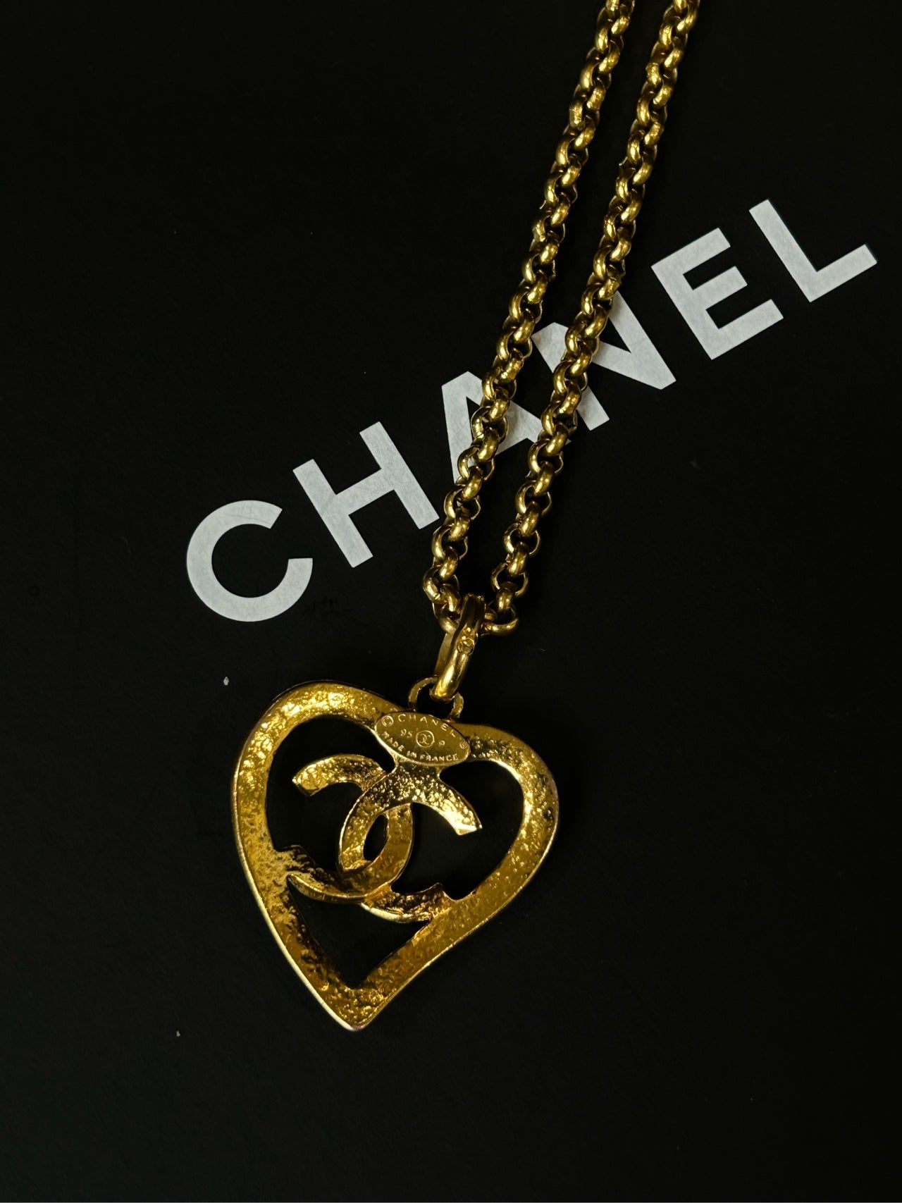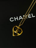 CHANEL Hollow Heart Pendant Necklace 95P - 60cm Gold Chain (A Grade)