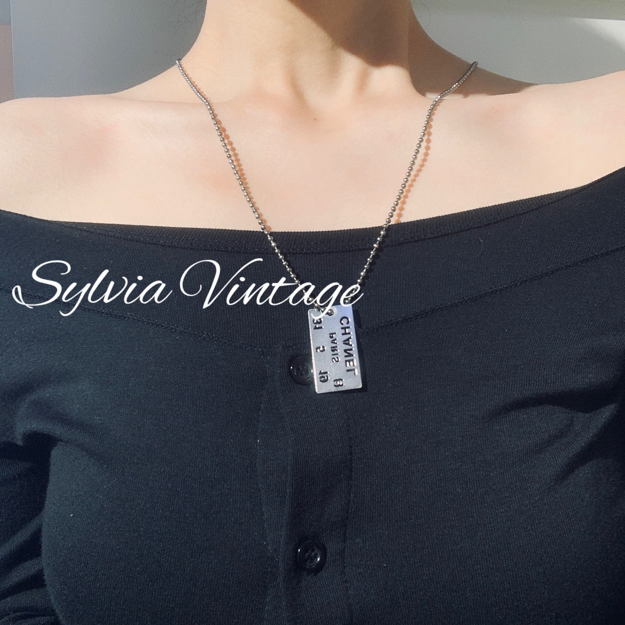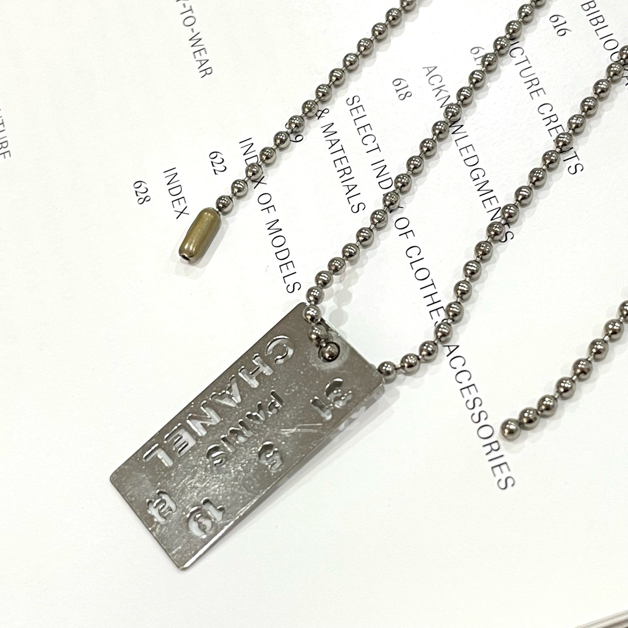 Chanel Hollow-Out Letter Dog Tag Necklace