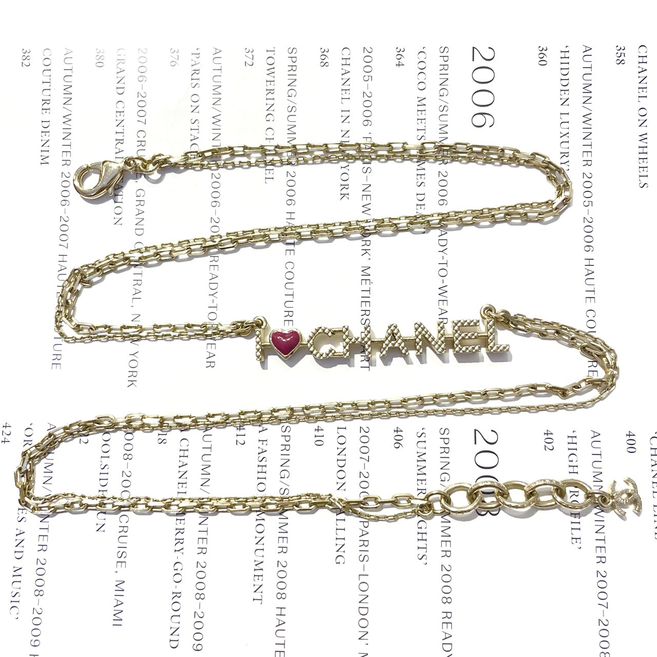 Chanel "I Love Chanel" Double-Layer Light Gold Necklace, Must-Have for Chanel Fans, 64.5cm Length, 5.5cm Pendant, Gold-Plated
