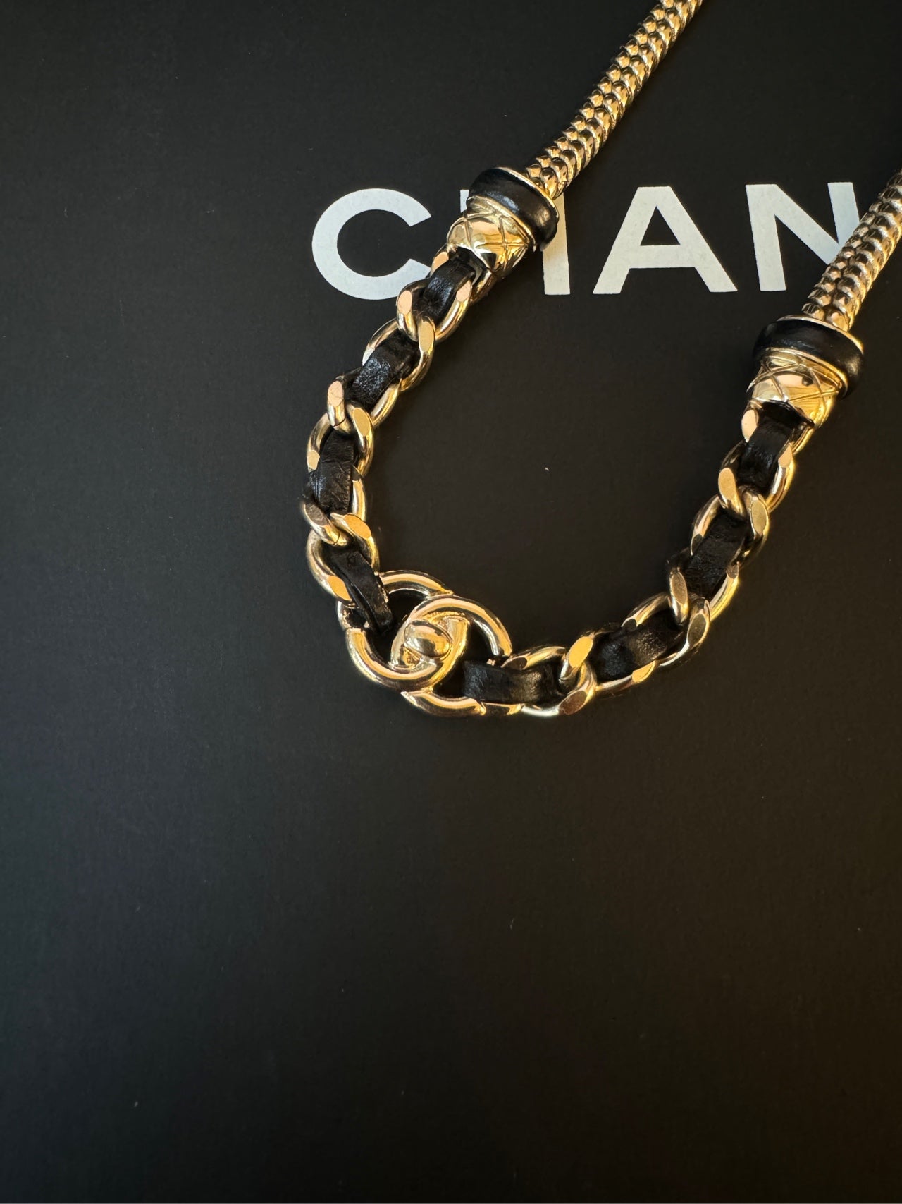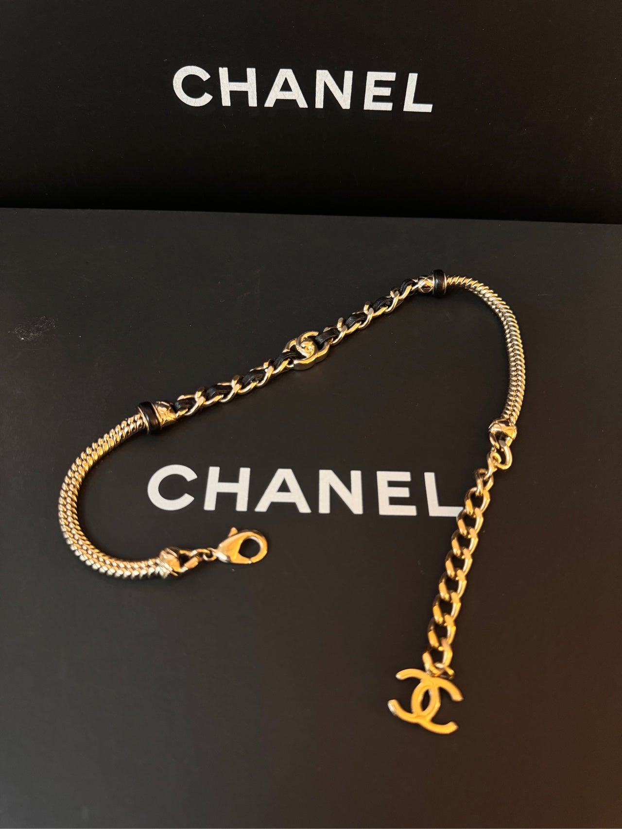 CHANEL Leather-Threaded Snake Chain Collarbone Necklace 21B - 43cm