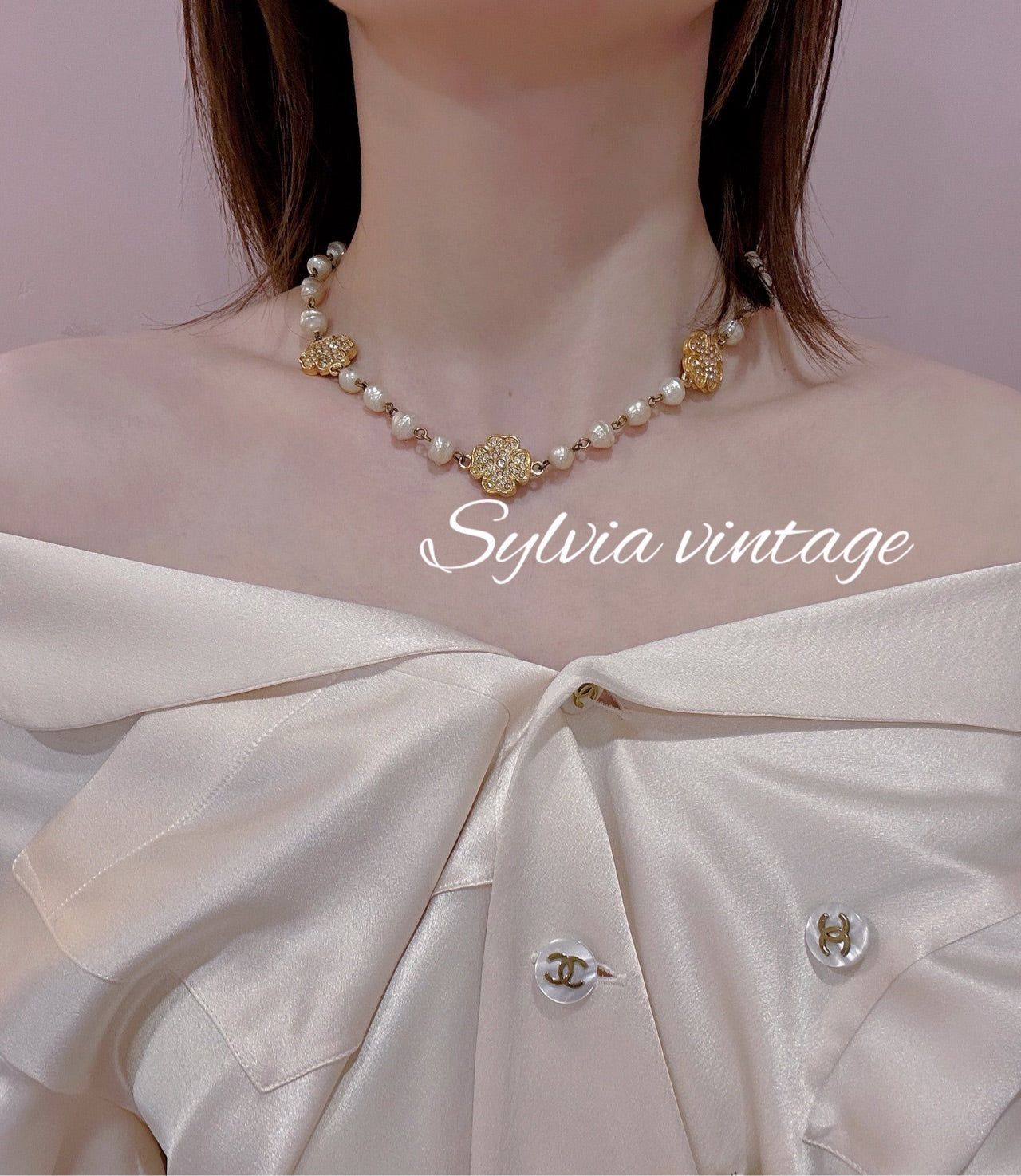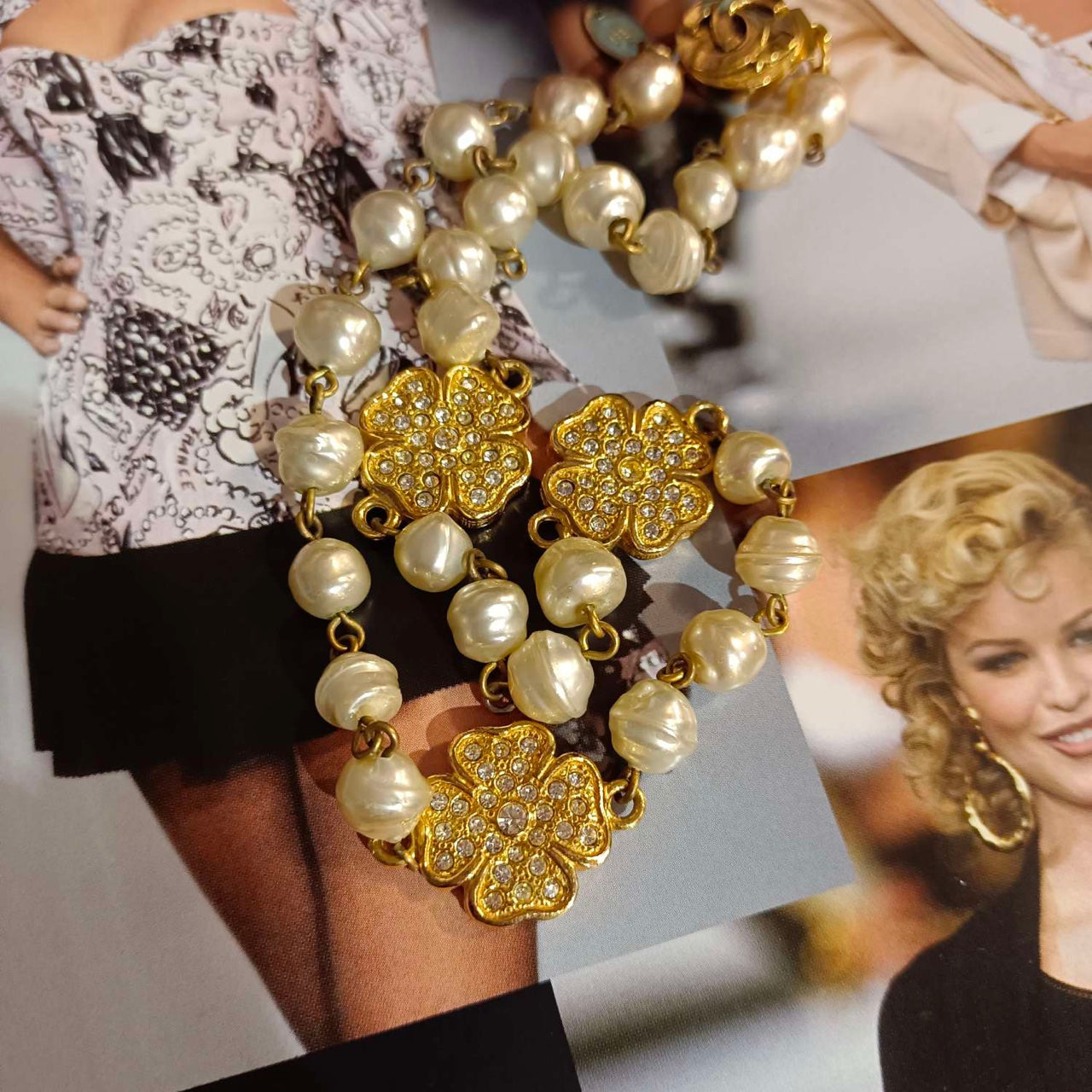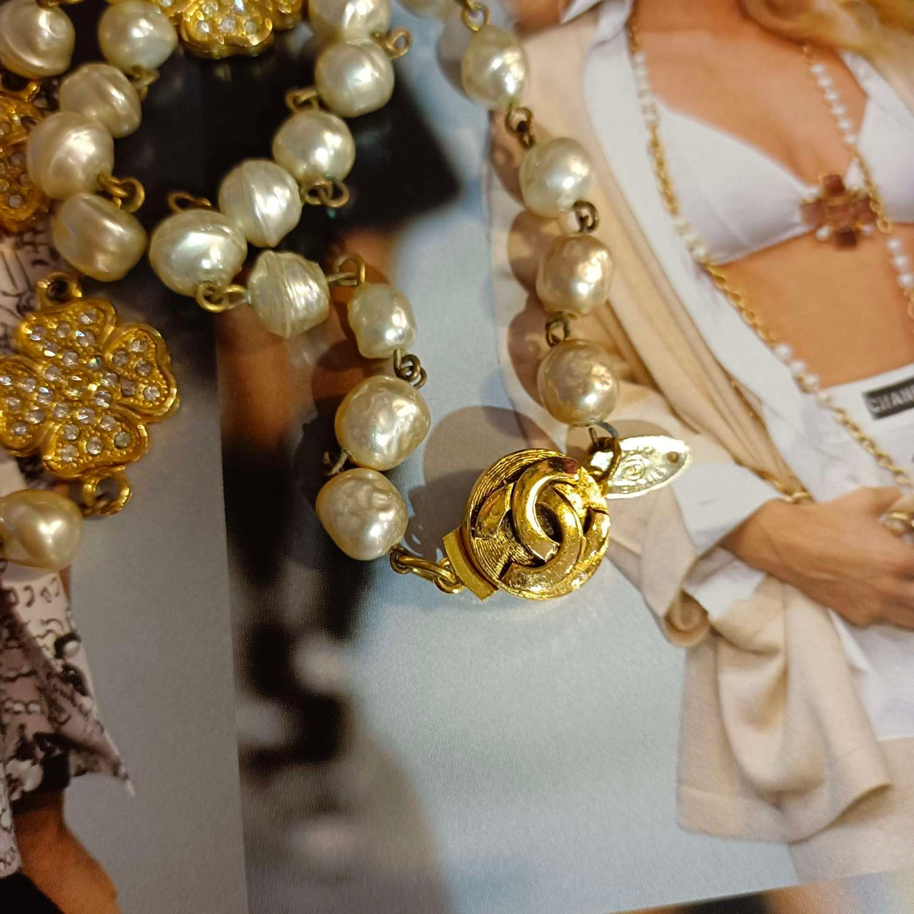 Chanel Pearl & Diamond Four-Leaf Clover Necklace - 45cm - Grade A - Gold-Plated & Pearl