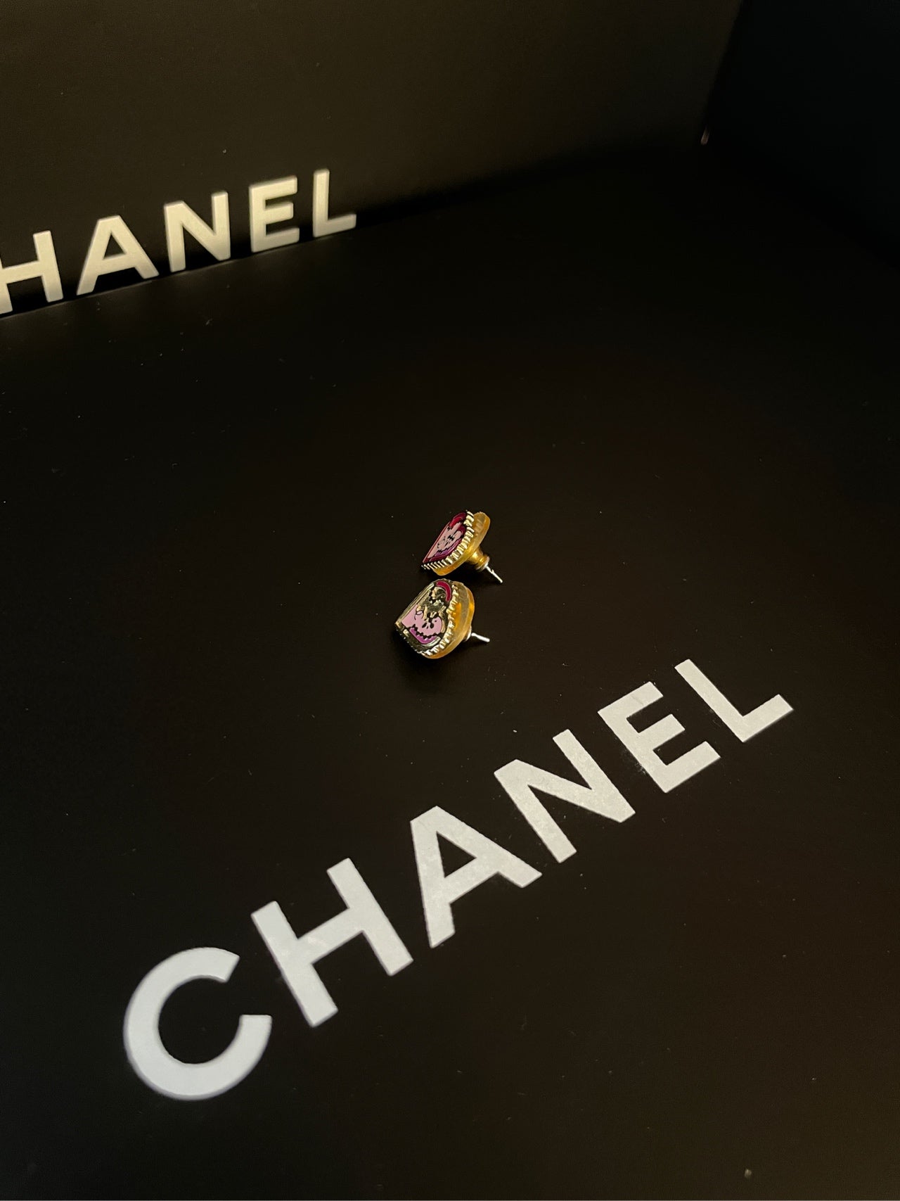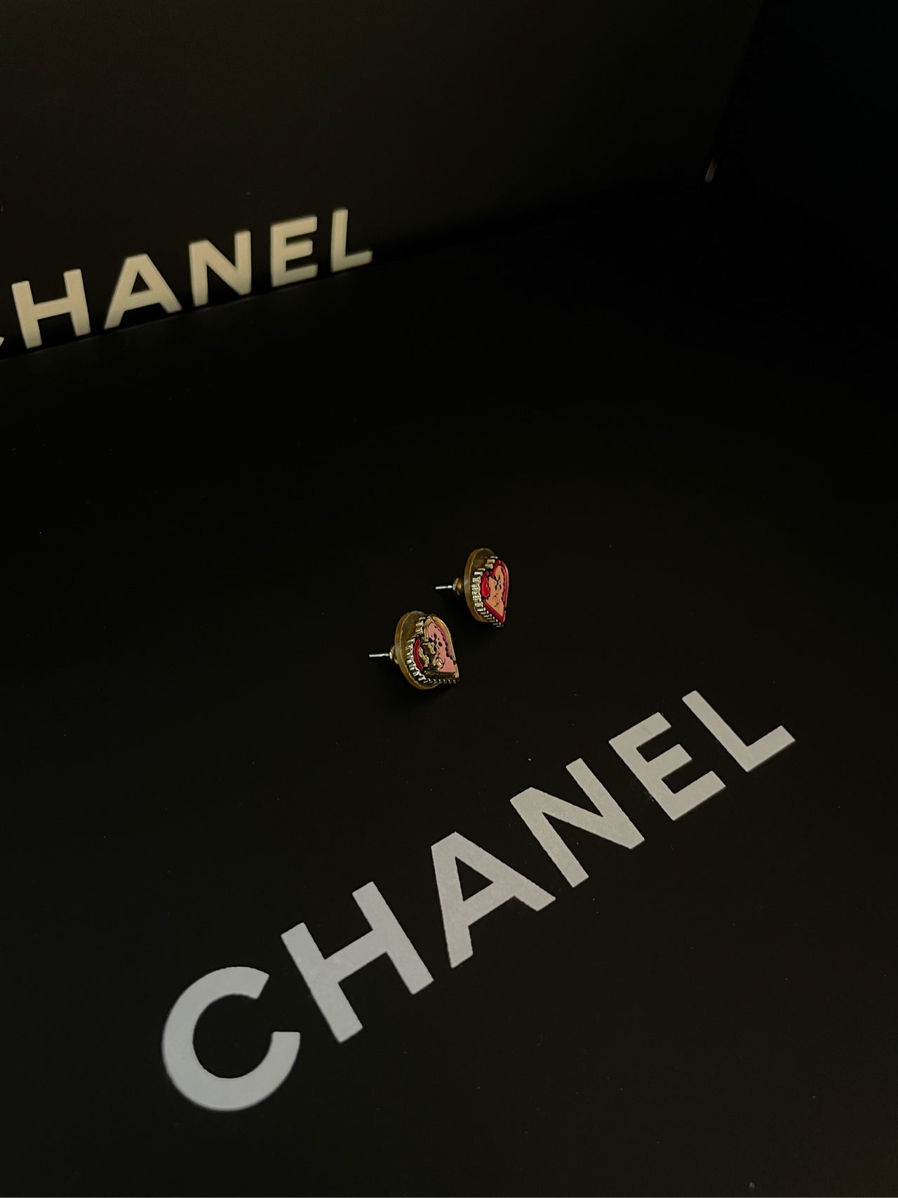 Chanel Pink Heart Earrings 1.2cm × 1cm Enamel 03P-Grade A