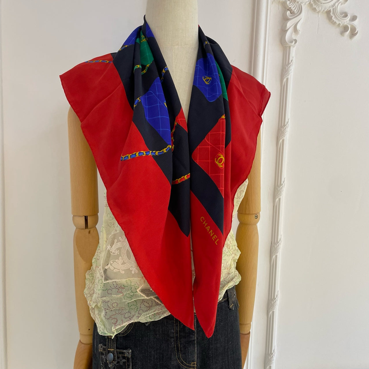 Chanel Square Pouch Scarf (Les Miniatures) - 88×88cm - 100% Silk - Grade A - 1990s Vintage