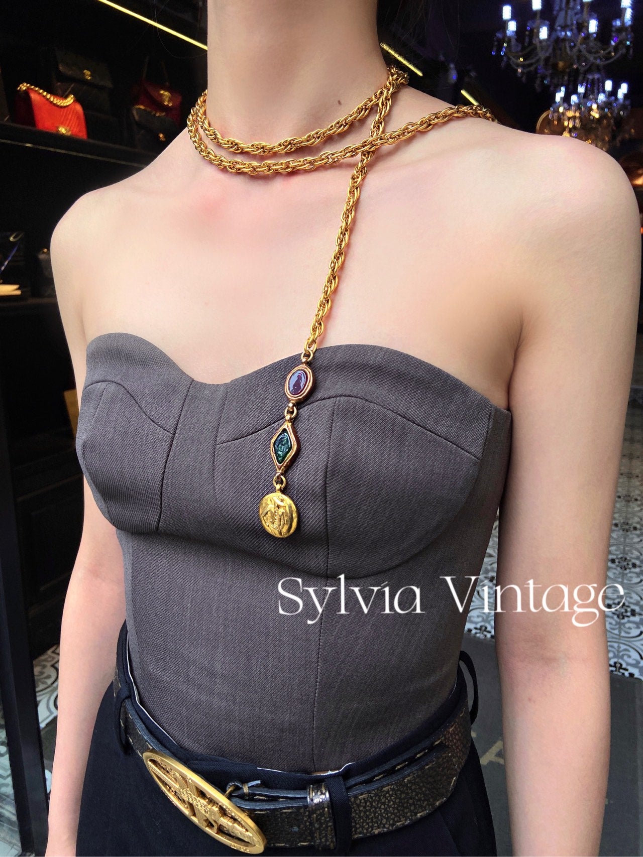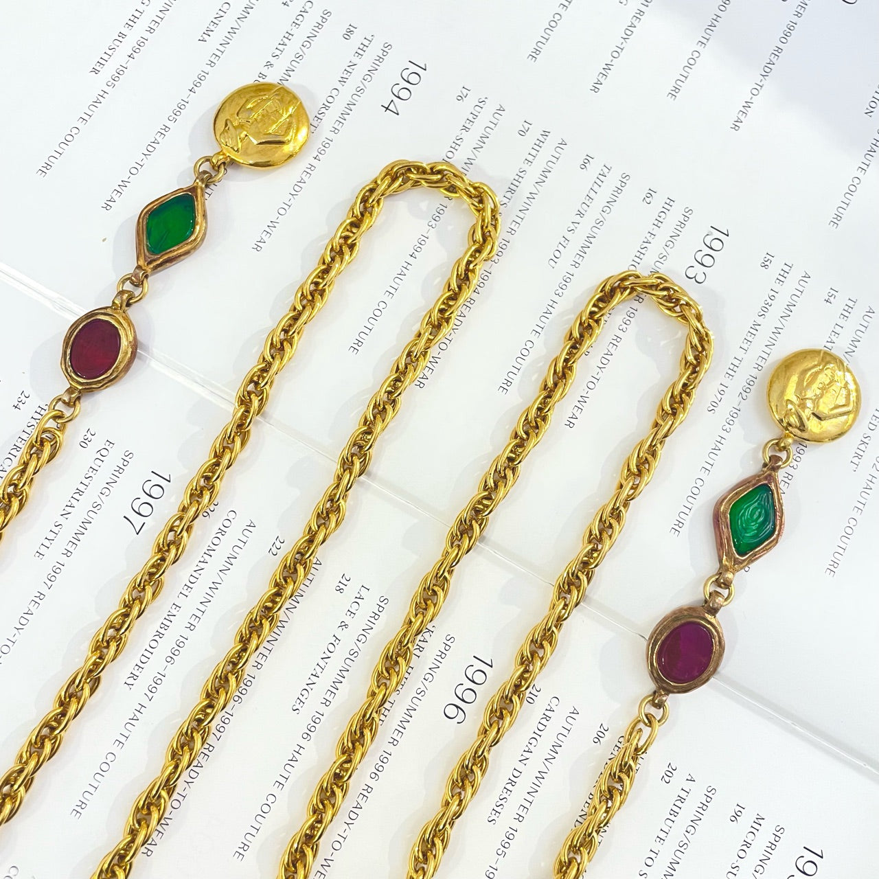 Chanel Vintage 1990s Gold-Plated & Glass Bead Belt Chain / Necklace - 120cm - Grade A (With Engraving Photos)