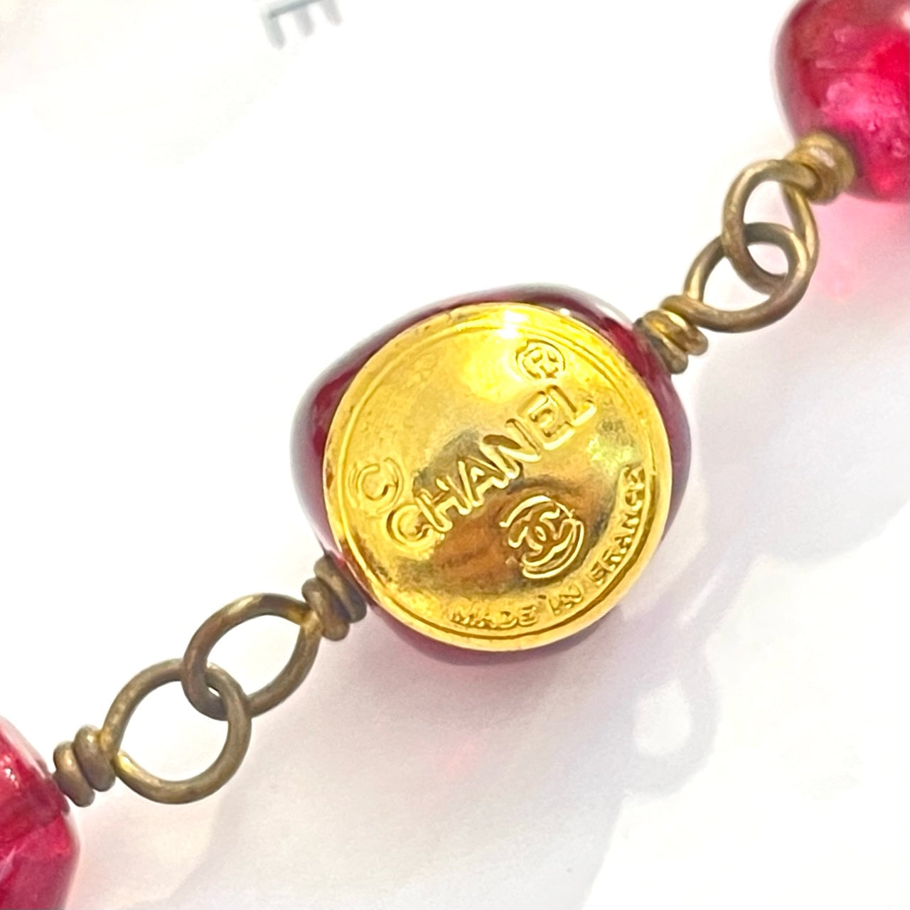 Chanel Vintage 1990s Red Glass Bead Sweater Chain - Grade A