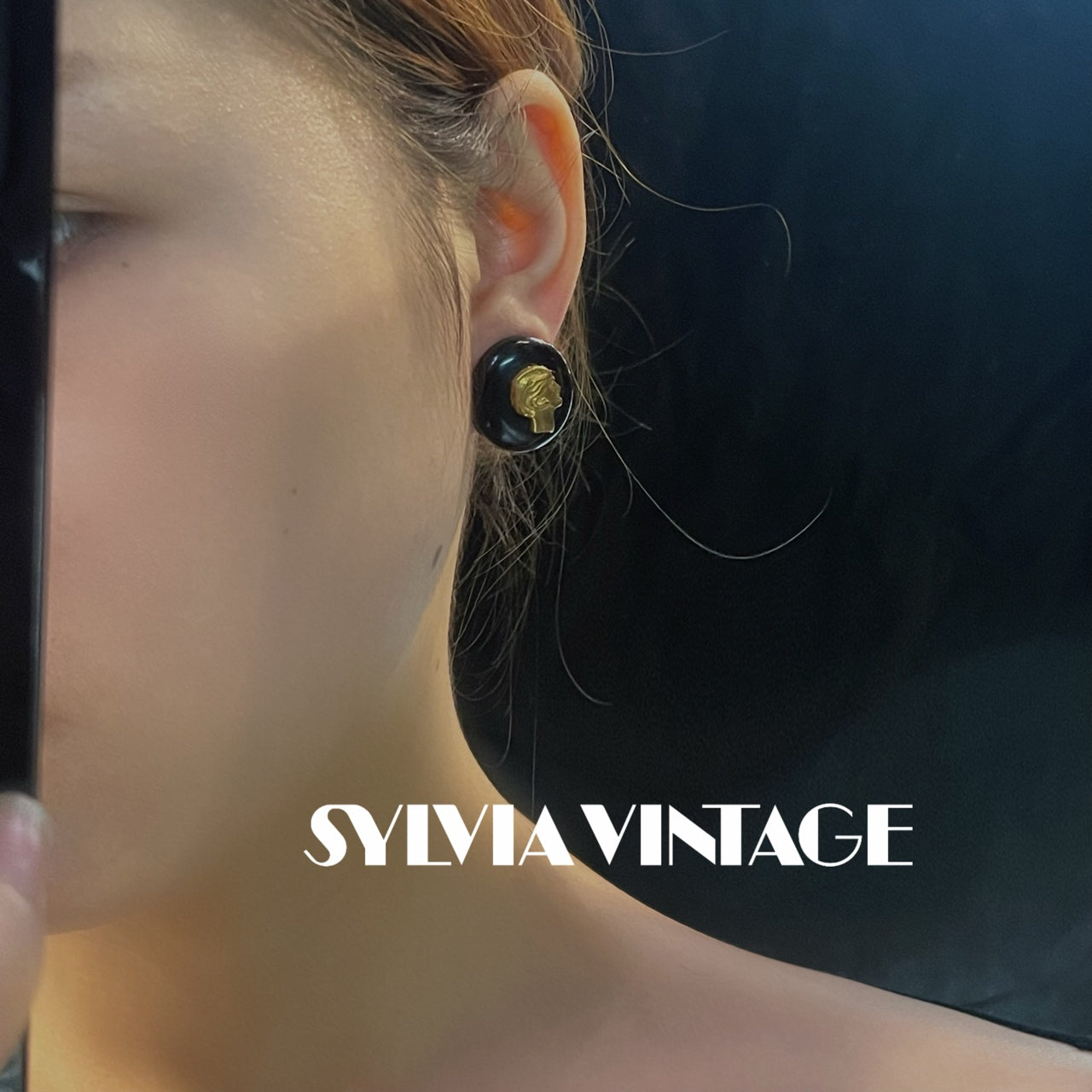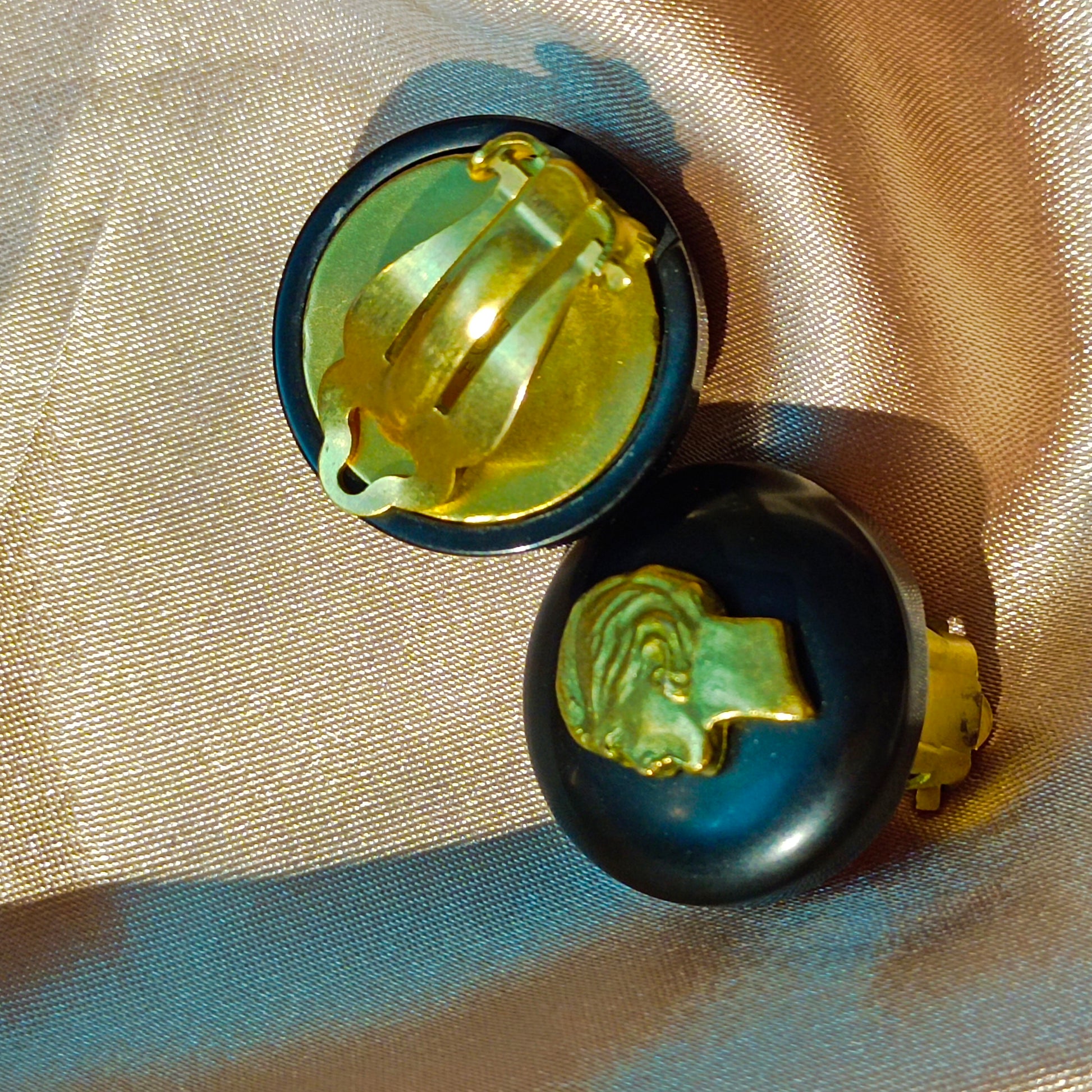 Chanel Vintage 1995 Black & Gold Portrait Clip-On Earrings - Grade A
