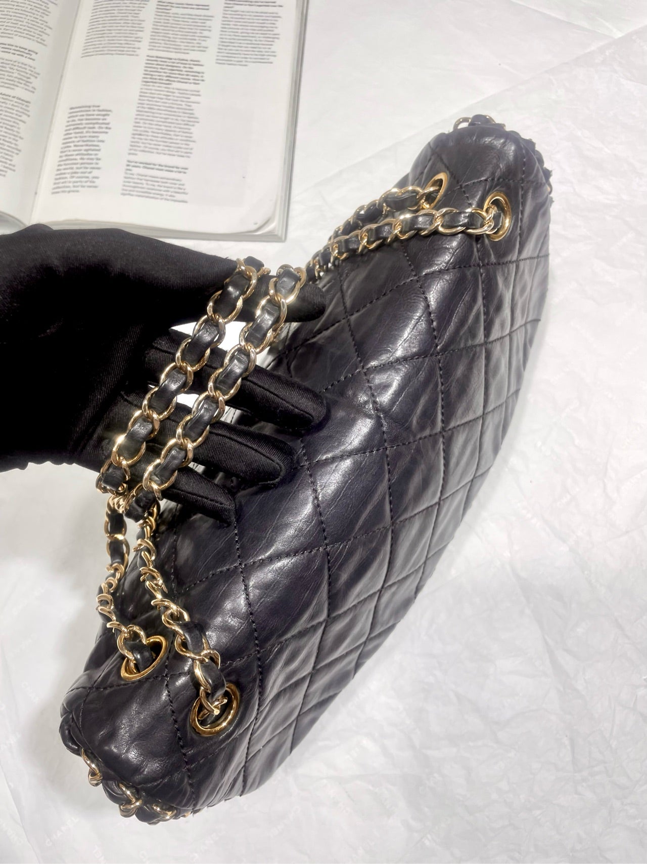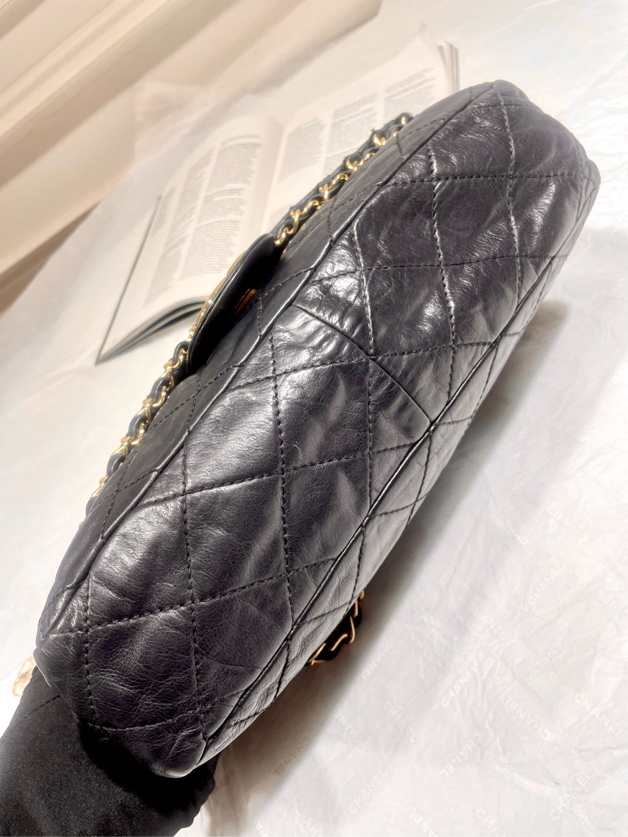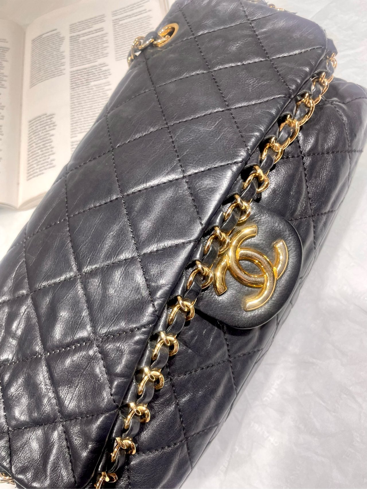 Chanel Vintage Black Waxed Calfskin Classic Flap with Gold Hardware - 29×14cm - A-Grade (Serial 16242320)
