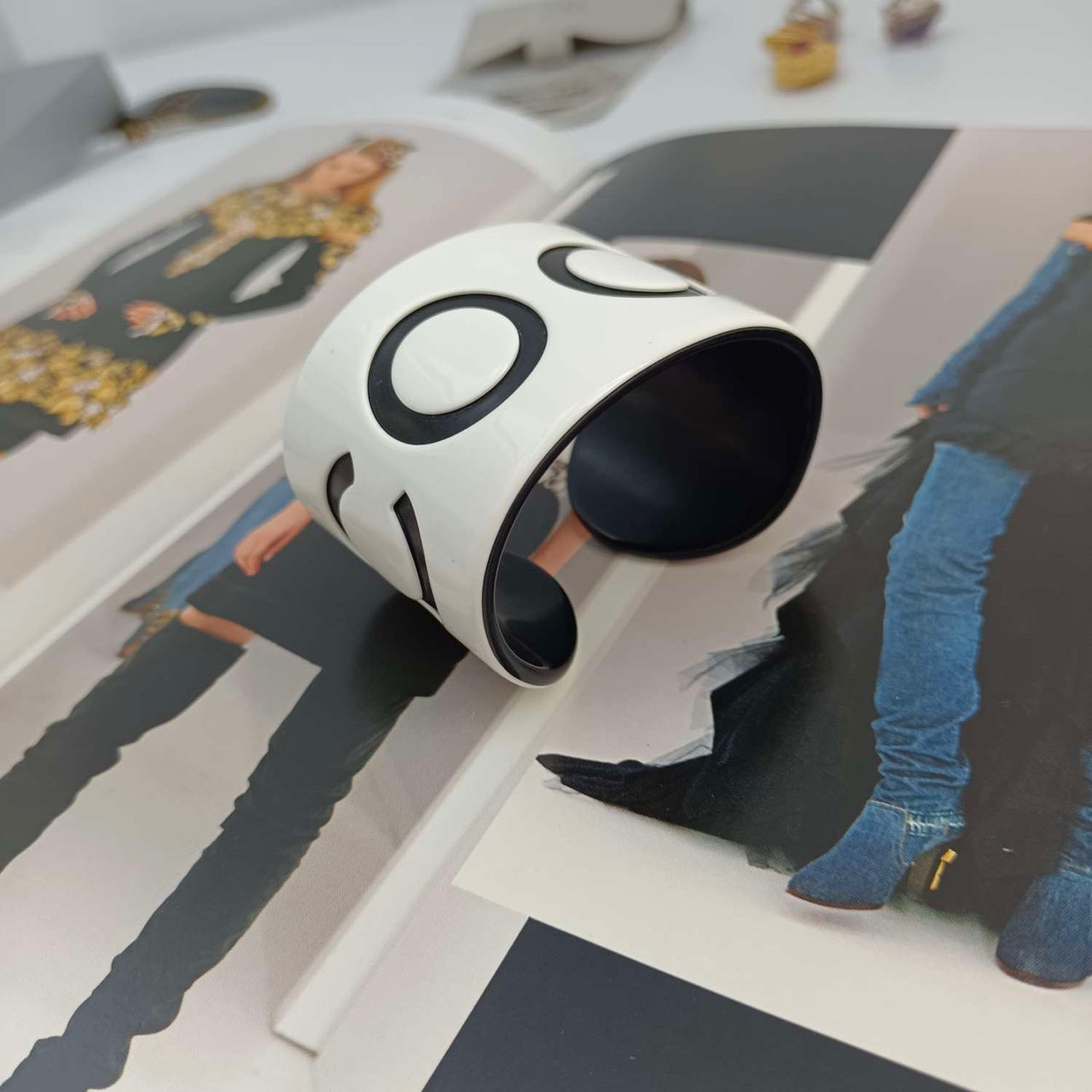 Chanel Vintage Black & White Acrylic Cuff Bracelet - Grade A (14cm Wrist Circumference, Stamped, with Engraving Photos)