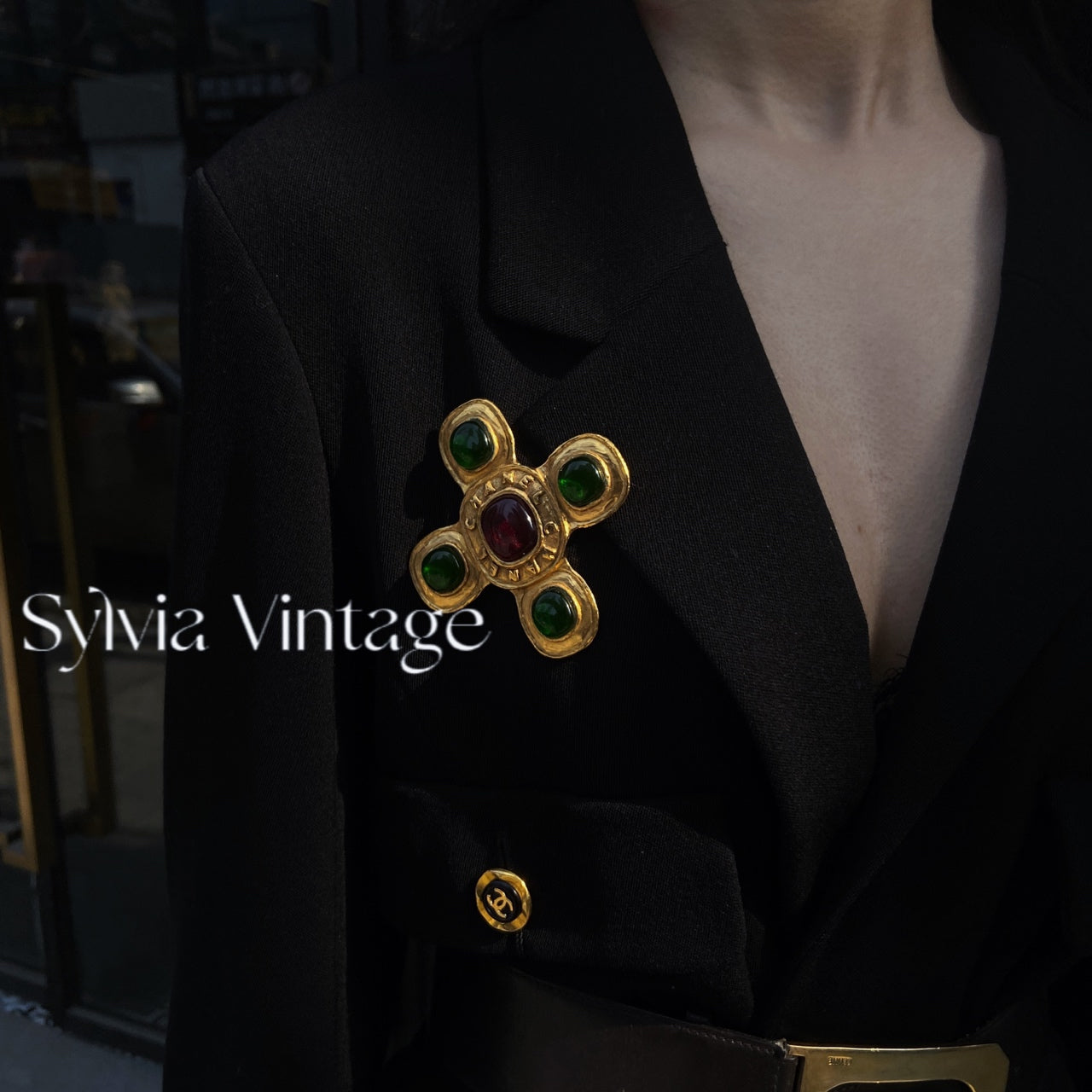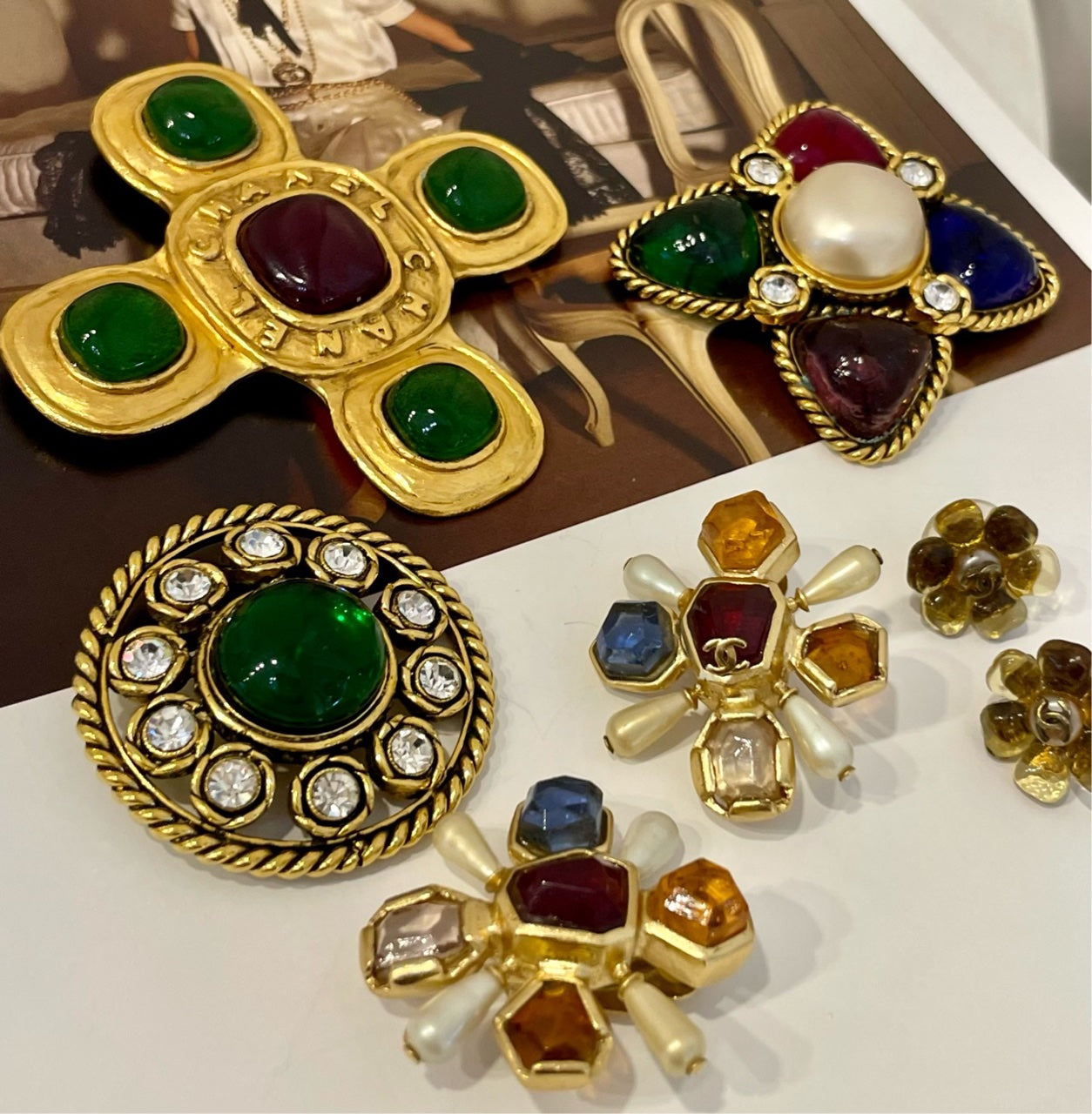 Chanel Vintage Glass Brooch, 8cm Diameter, 1990s, Glass & Gold-Plated, A-Grade