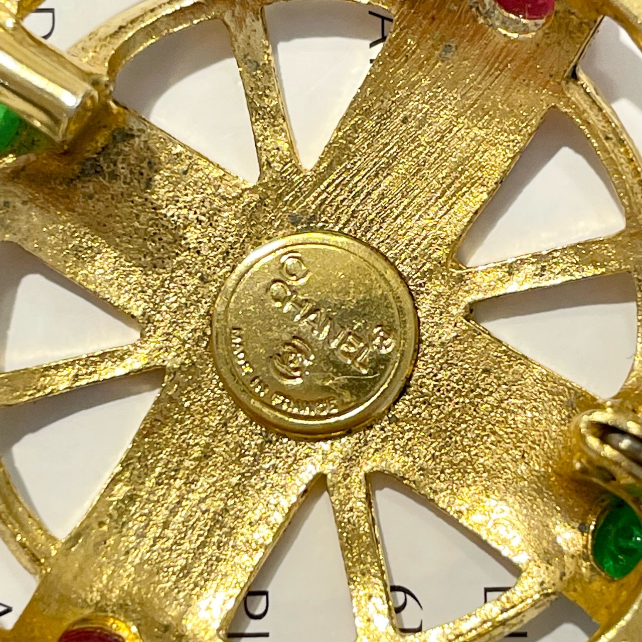 Chanel Vintage Openwork Glass Brooch, 4.5cm Diameter, 1990s, A-Grade, Gold-Plated & Glass