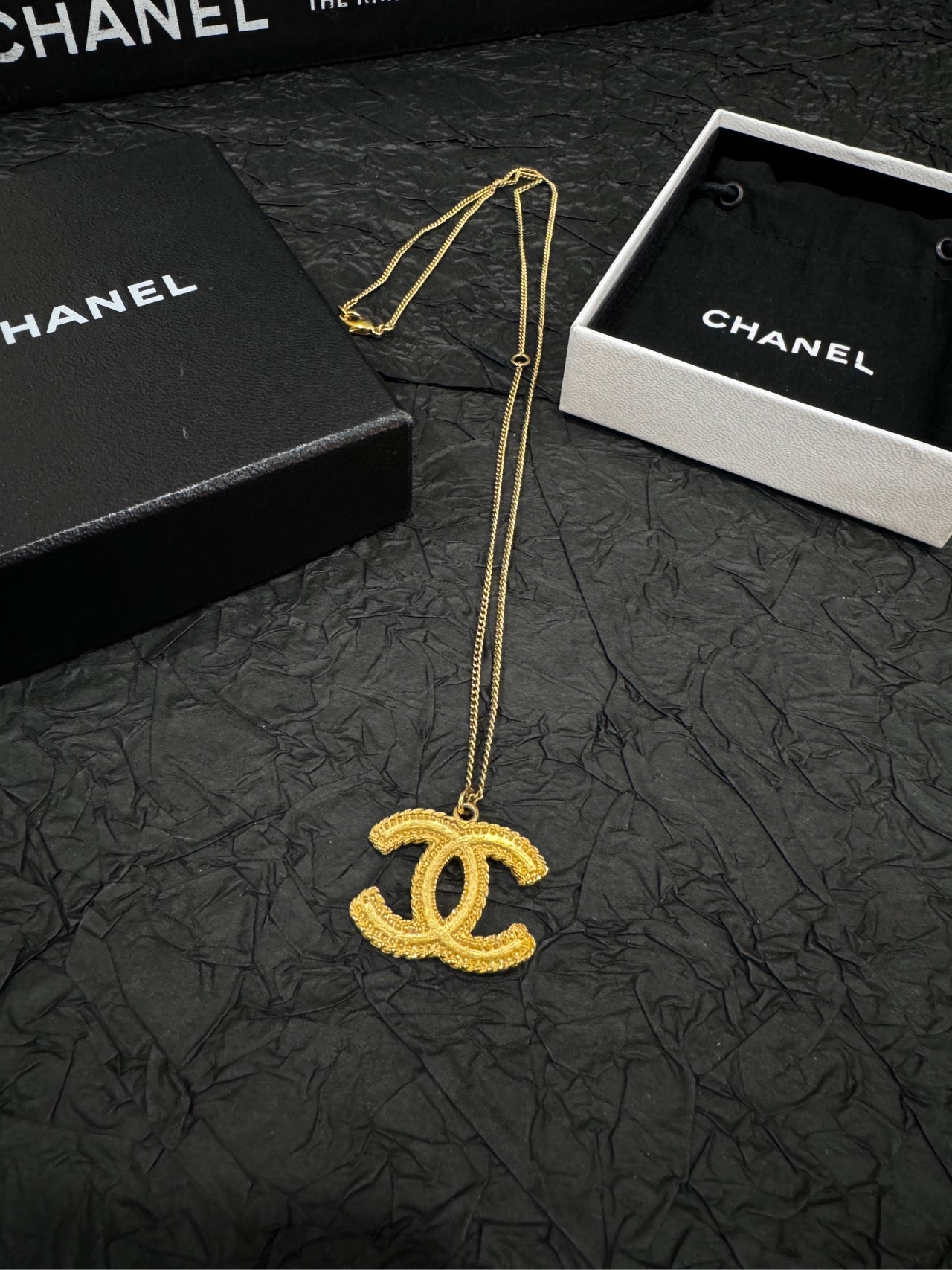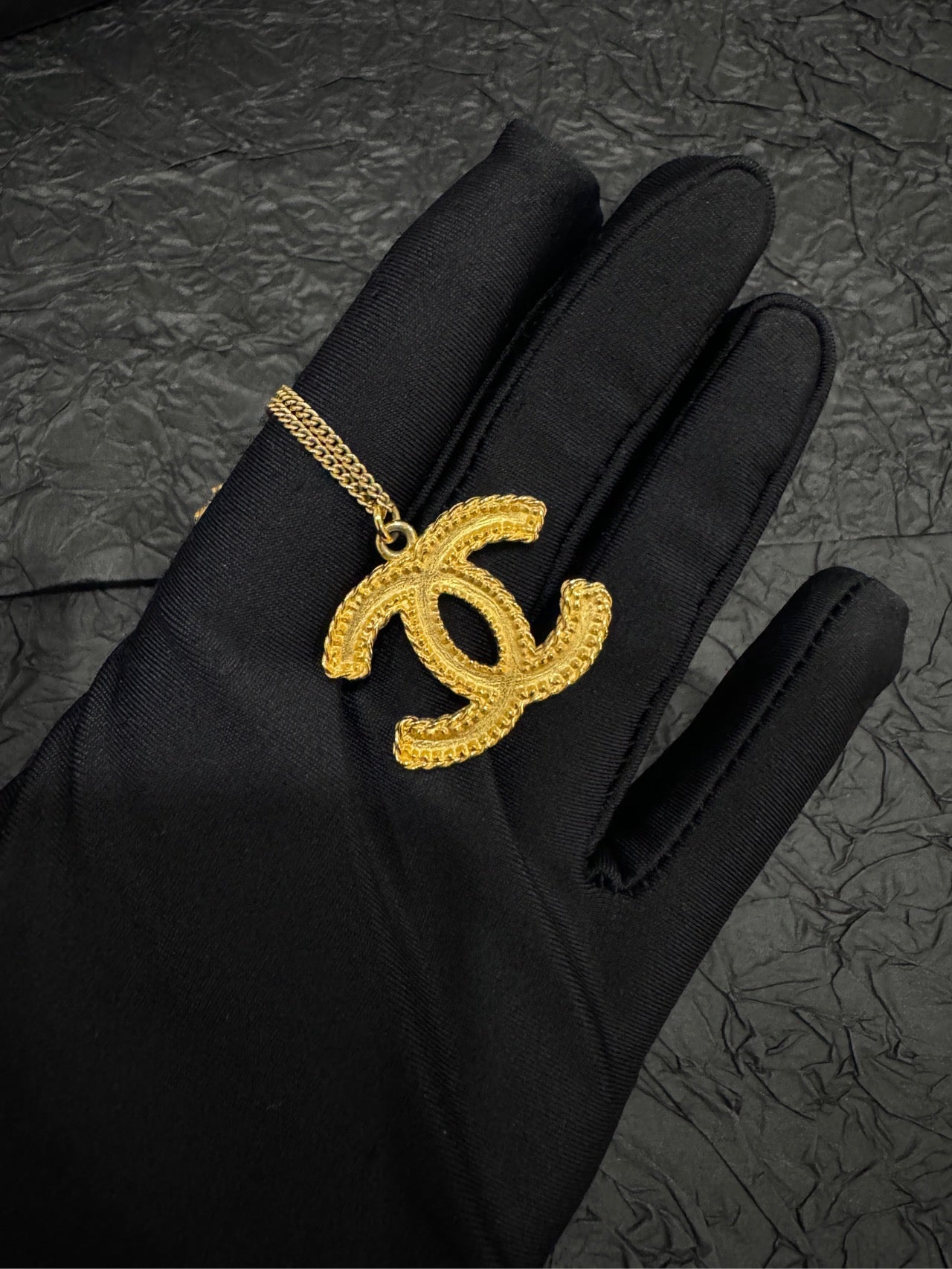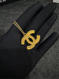 Chanel Vintage Wheat & Double C Sweater Necklace (Grade A)-Length: 61cm,Pendant Size: 3cm × 2.5cm-Gold-Plated