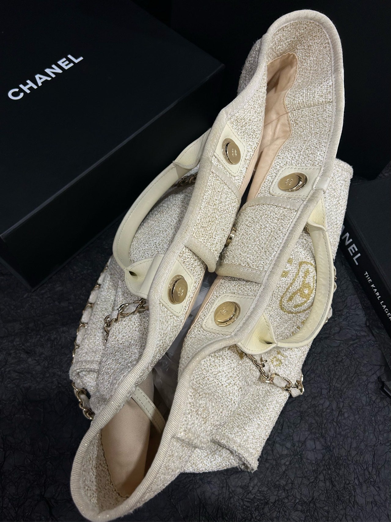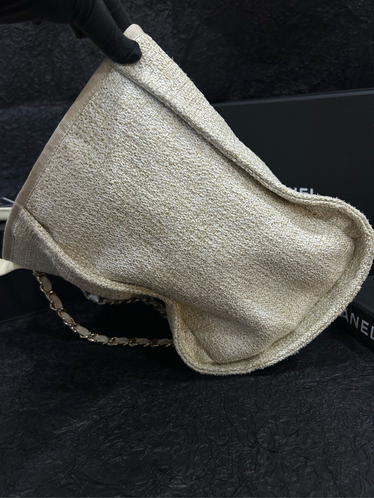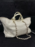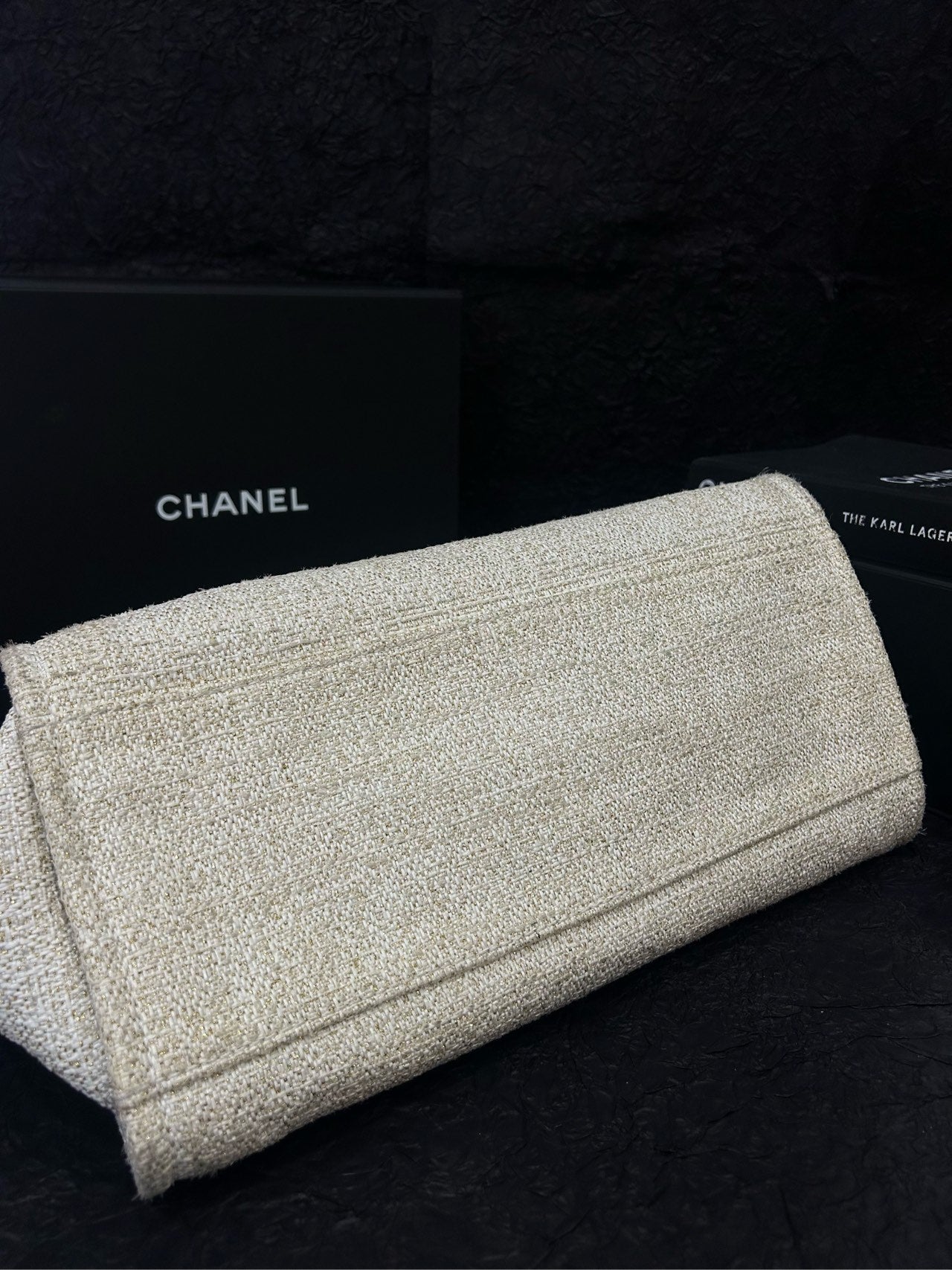 Chanel White Gold-Thread Embroidered Logo Large Beach Tote - 38×32cm - A-Grade (Serial 26995153)