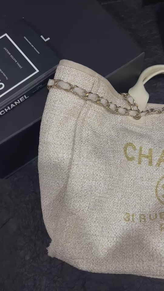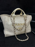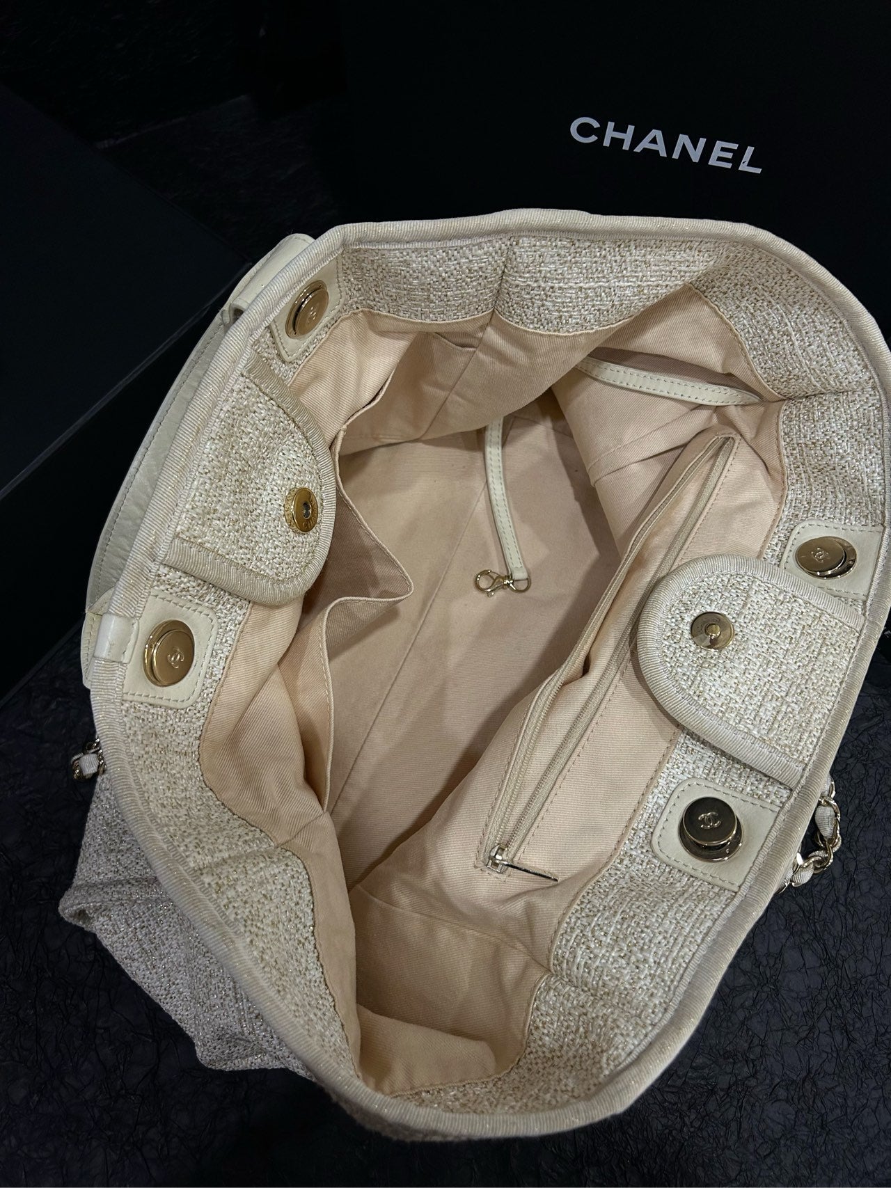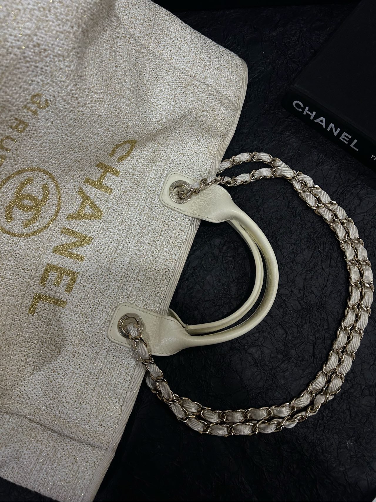 Chanel White Gold-Thread Embroidered Logo Large Beach Tote - 38×32cm - A-Grade (Serial 26995153)