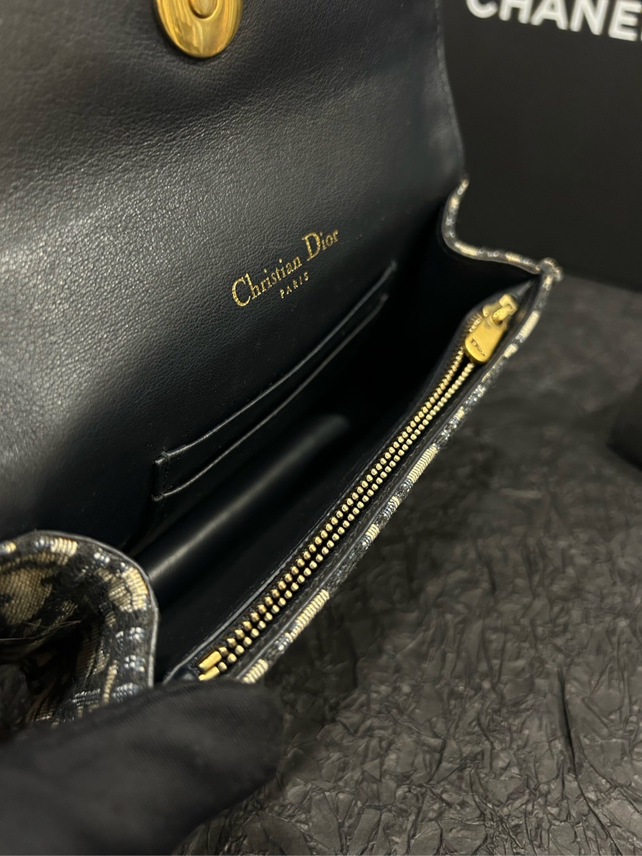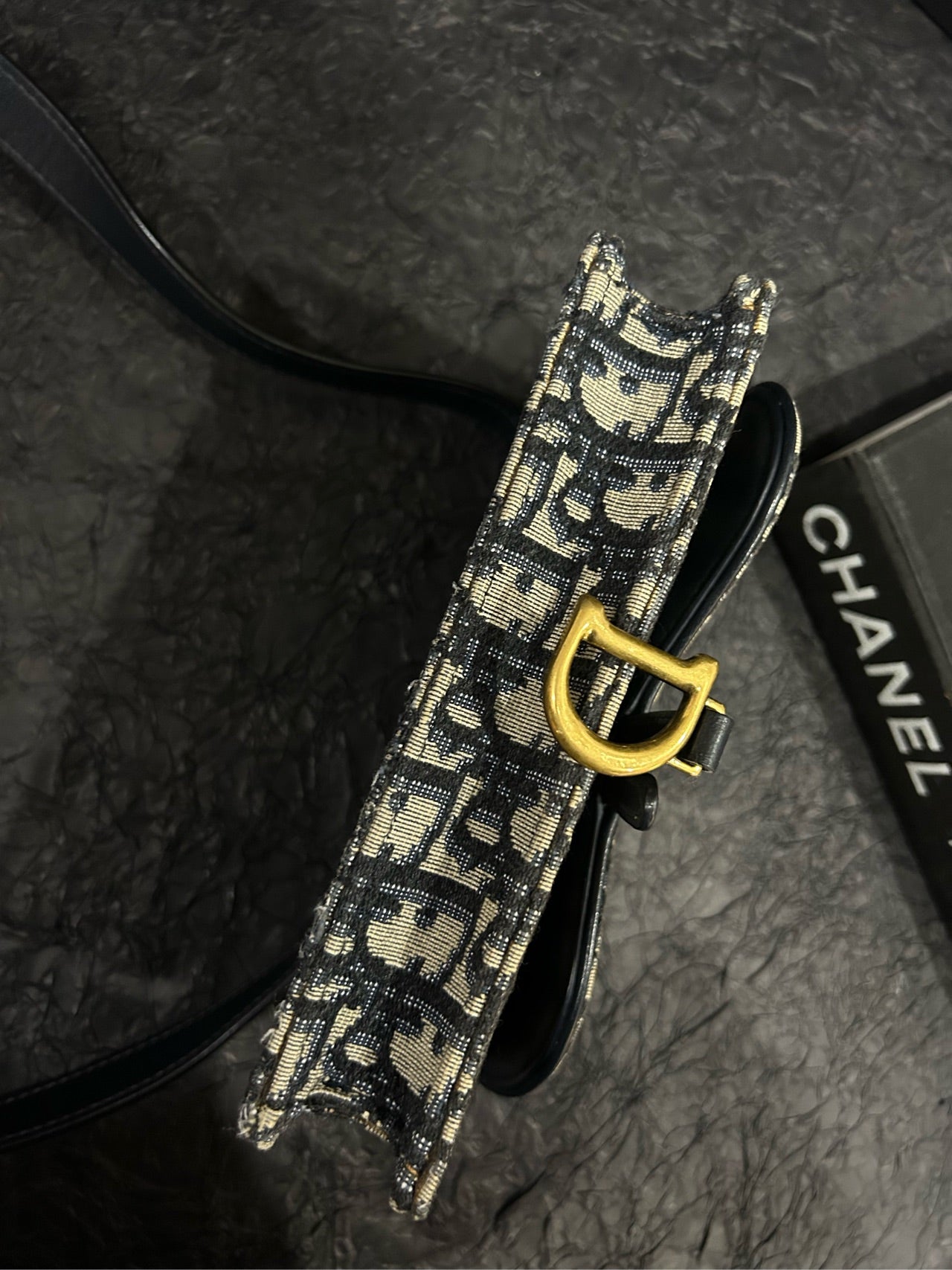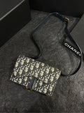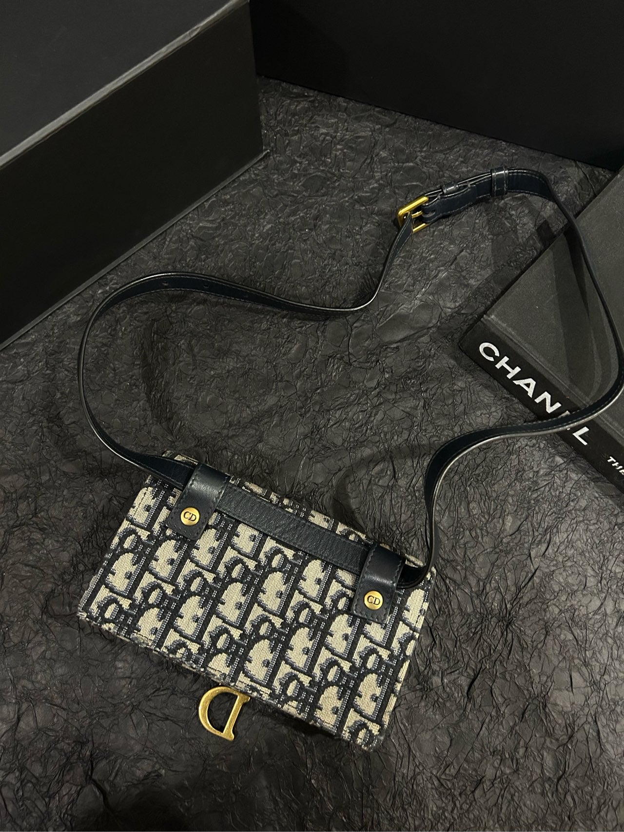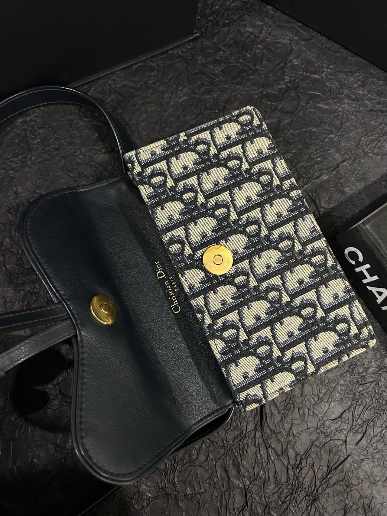 Dior Blue and Gold Oblique Saddle WOC Crossbody Bag in Canvas, 17cm x 10cm (Grade A) - Model 05-RU-0210