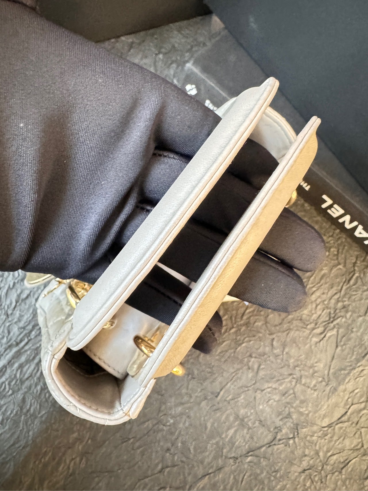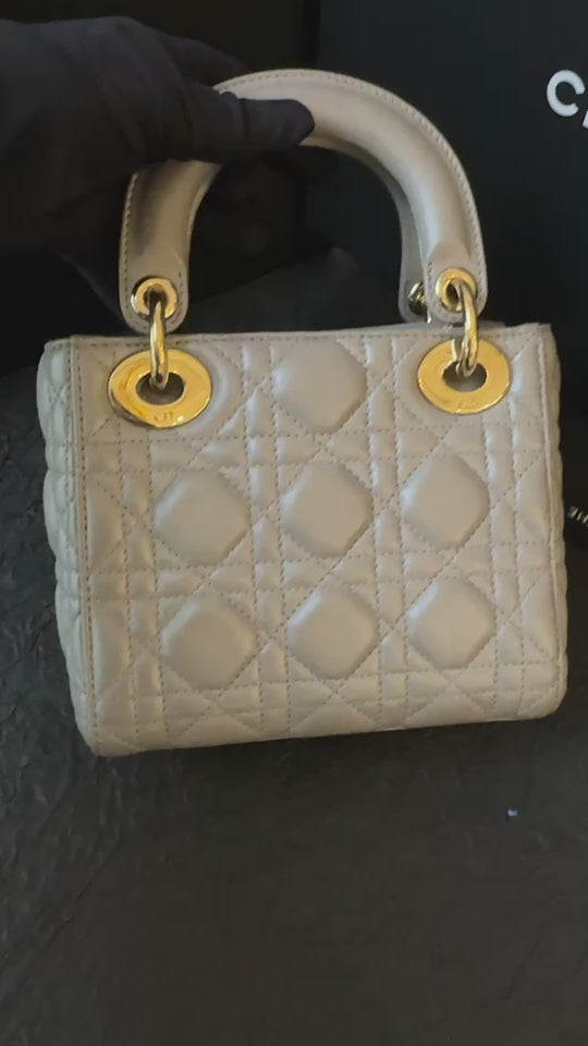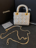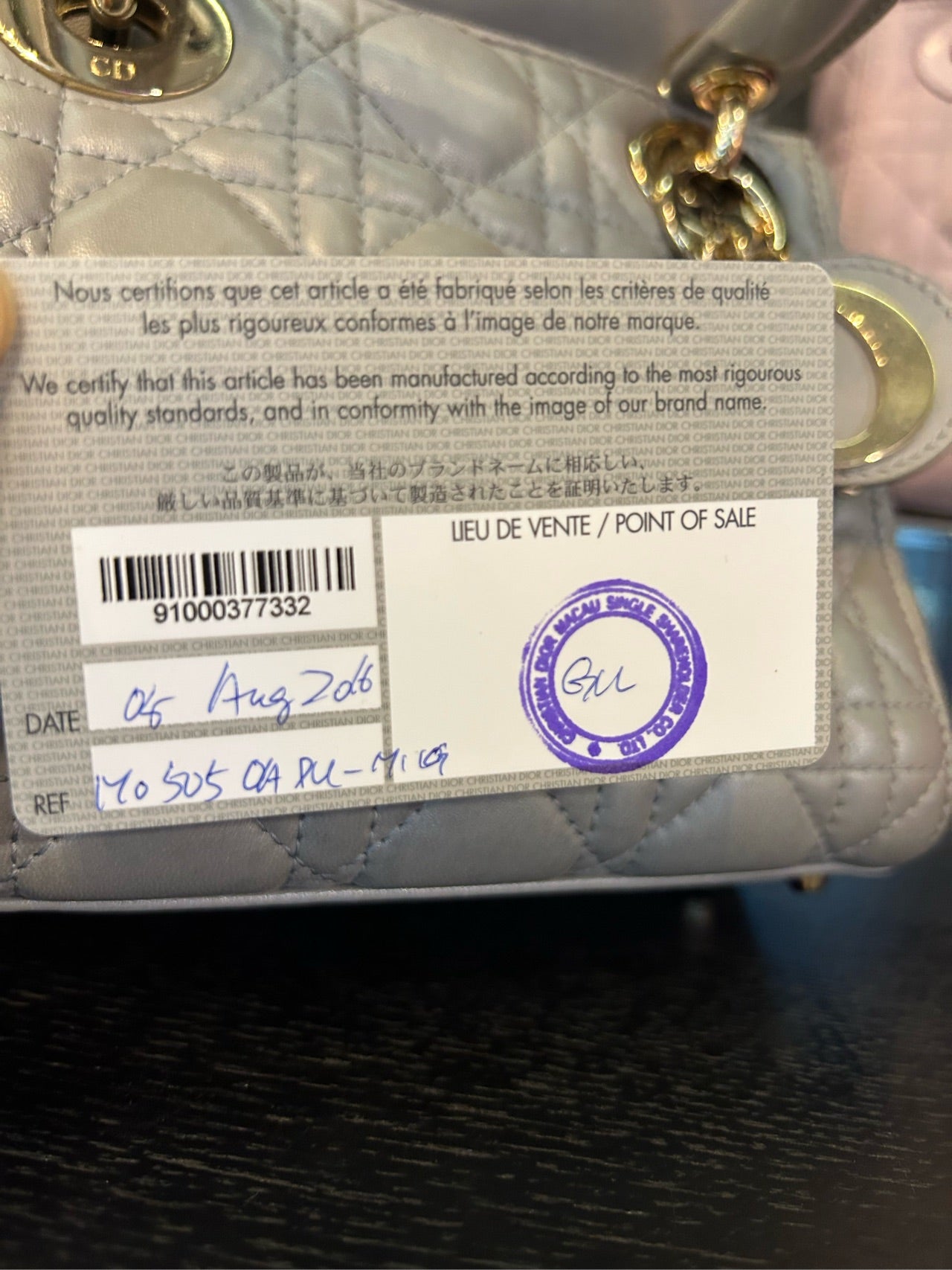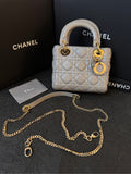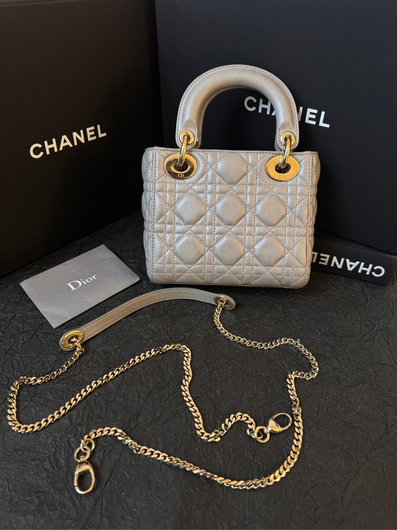 Dior Pearl Gray Lambskin Lady Dior Mini (3-Quilt) - 16.5×14cm - with card (Ref. 18-MA-0156)