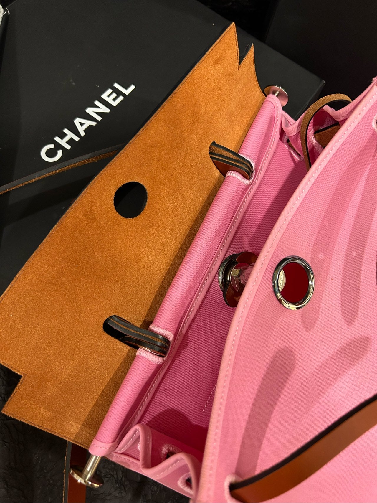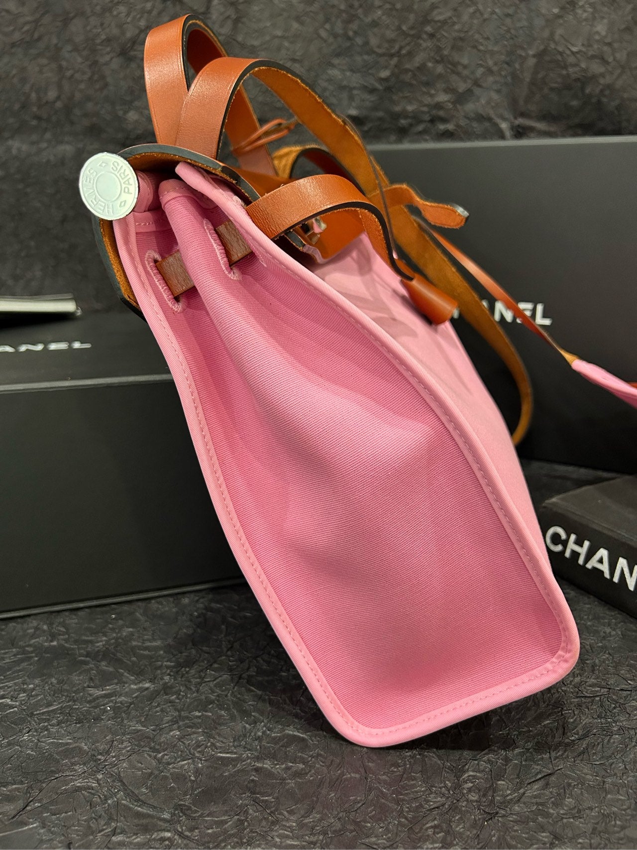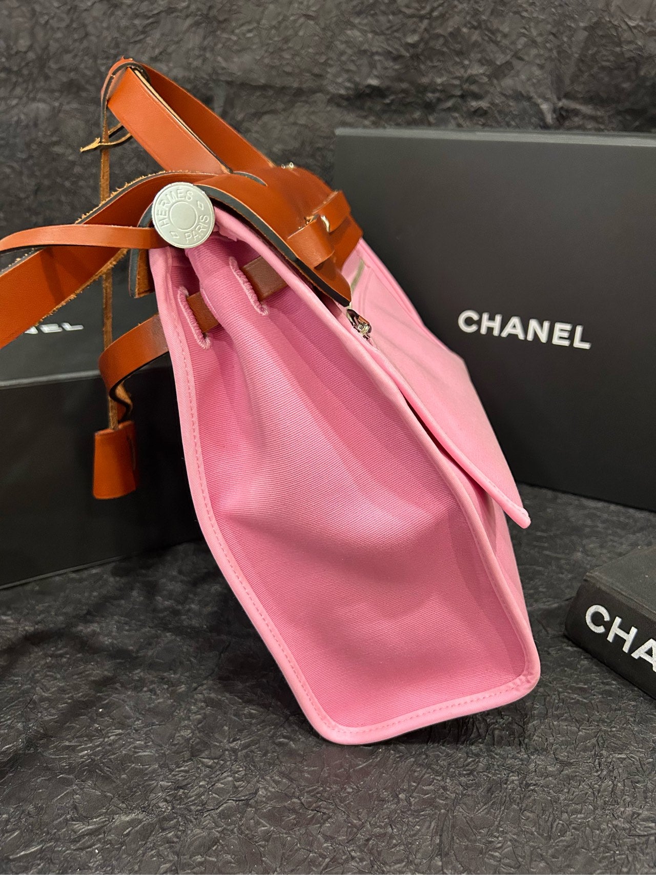 Hermès Herbag 31 in Pink with Silver Hardware (Model YTS002AJ, Grade A) ‌Dimensions‌: 31cm × 27cm | ‌Material‌: Canvas & Swift Leather