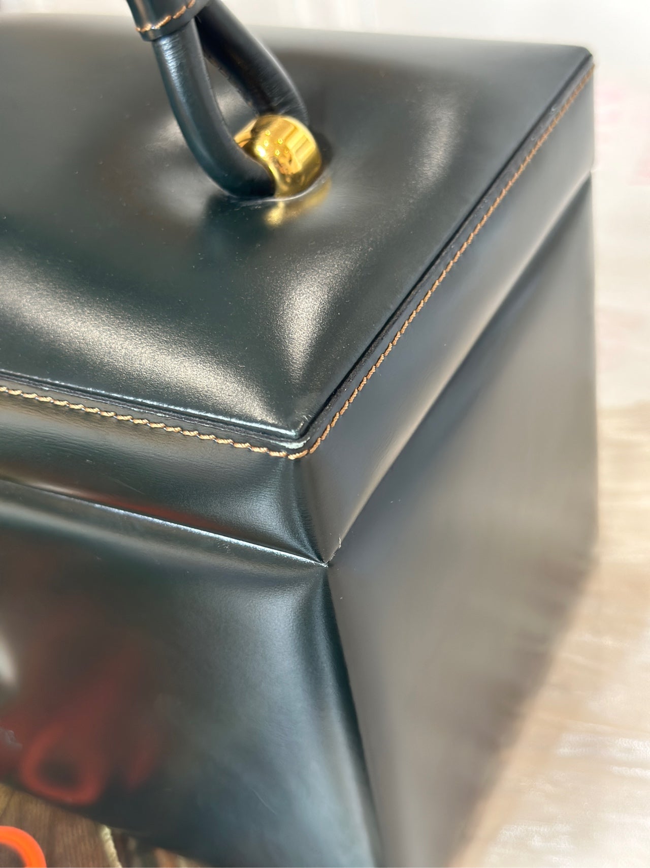 Loewe Dark Green Museum Box Bag in Calfskin - 24cm × 16cm (No Serial Number)-B-Grade
