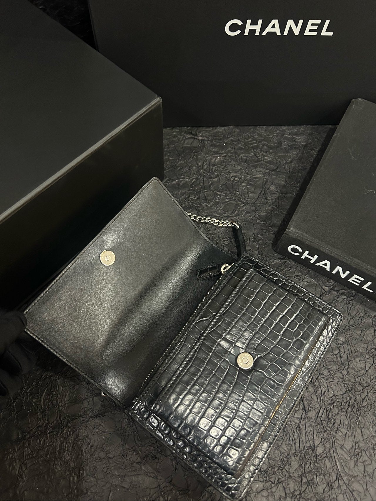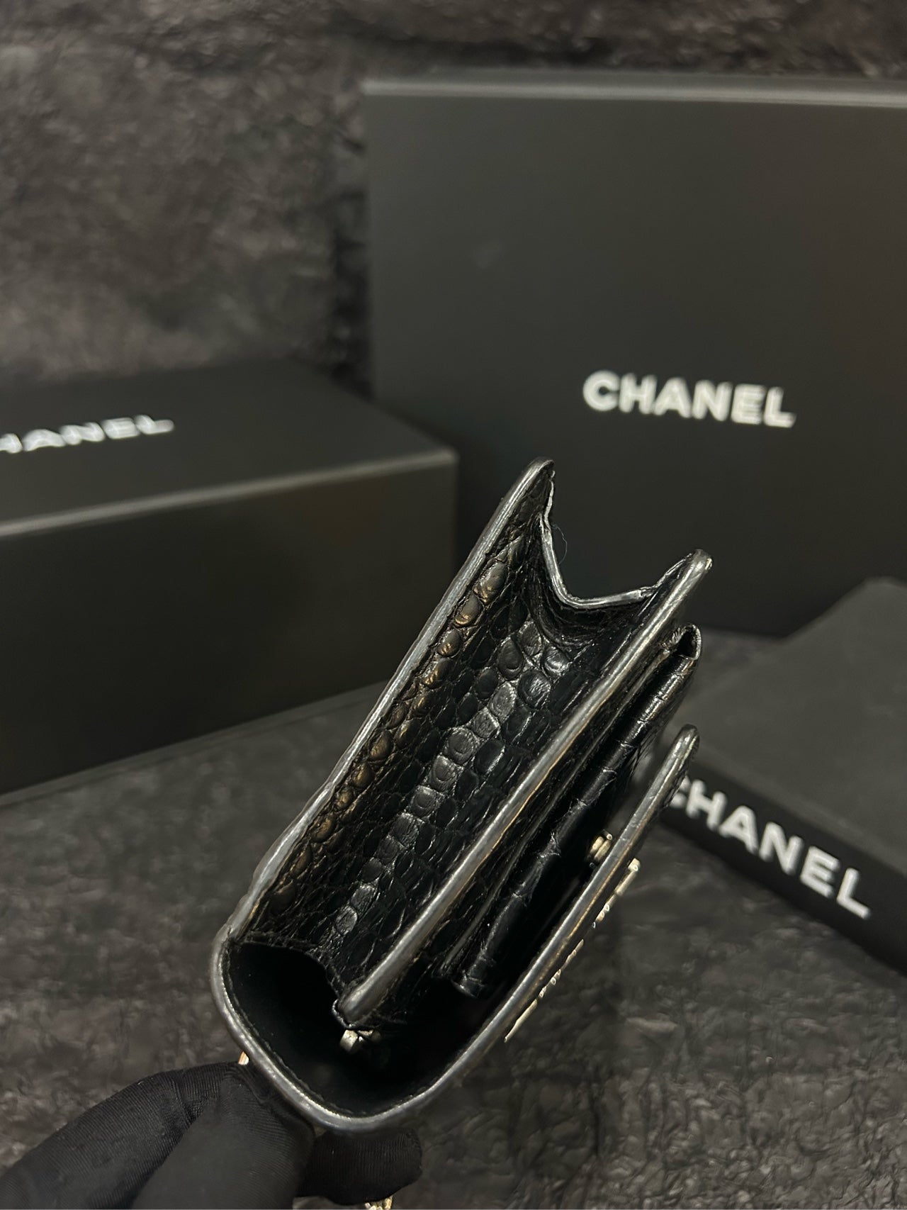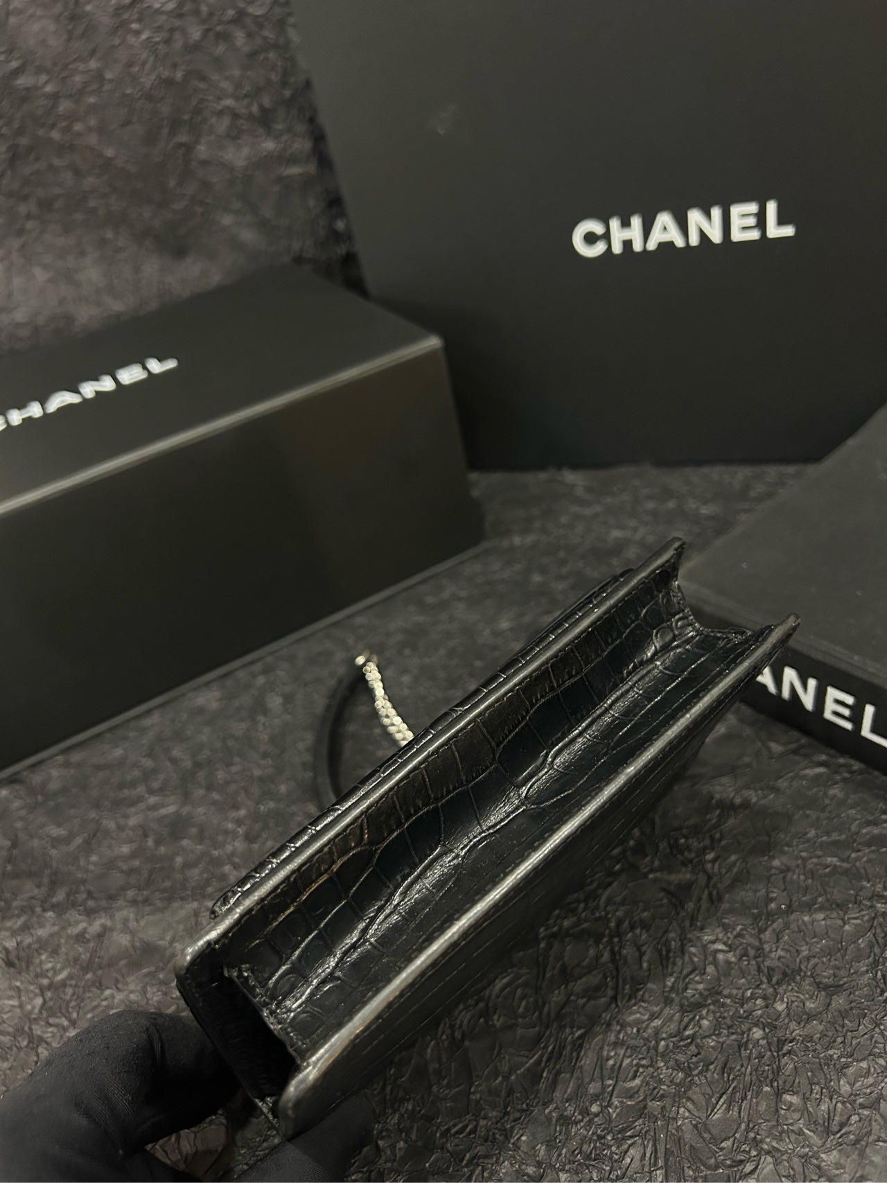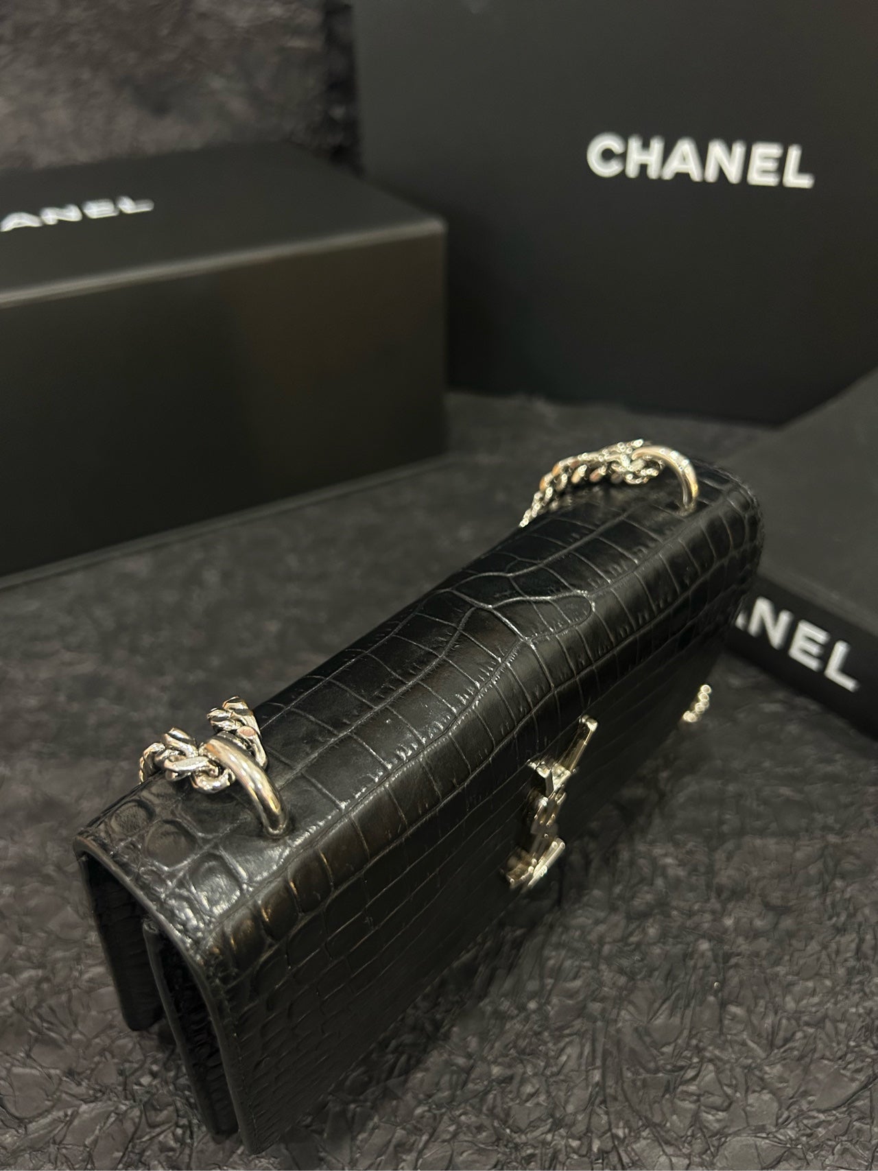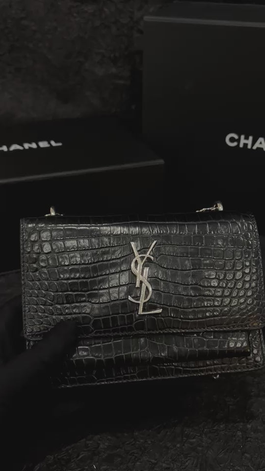 Saint Laurent Black Croc-Embossed Sunset Mini - 17×12cm - A-Grade (Code XXX0017)