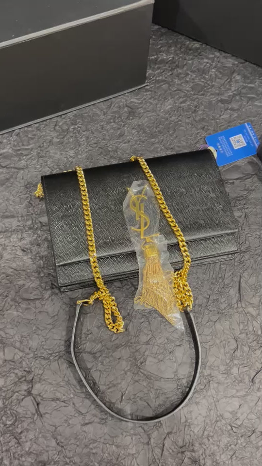 Yves Saint Laurent (YSL) Black Caviar Calfskin Kate Tassel Chain Bag Made in Italy 19×12cm Grade A Serial